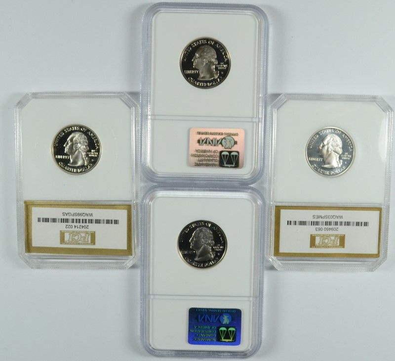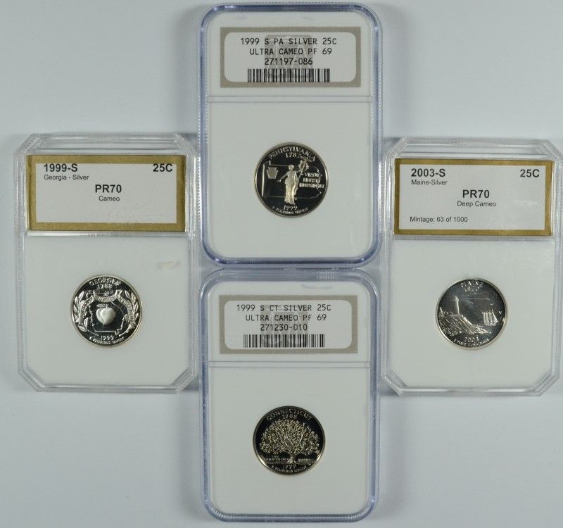 (4) SLABBED SILVER PROOF STATEHOOD QUARTERS (PA, GA, CT, ME)