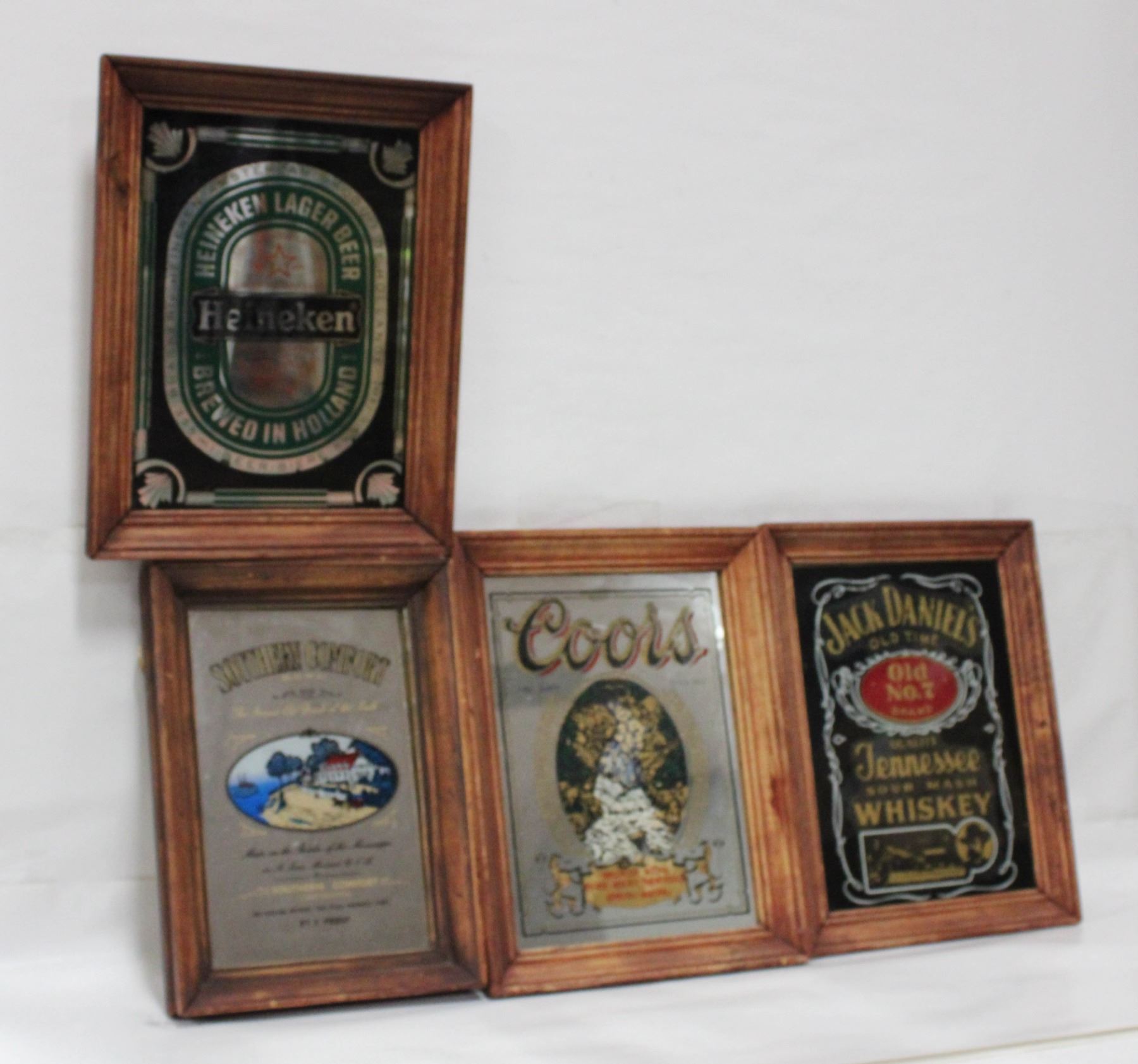 4 SMALL ASSORTED BAR MIRRORS, ONE LARGE