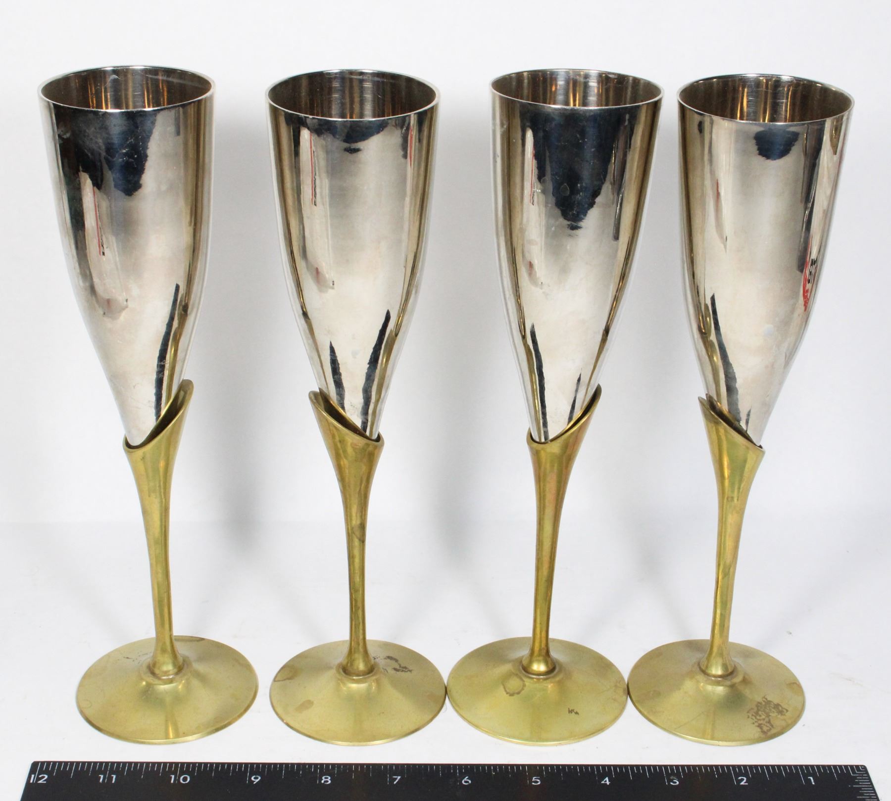 4 SOLID BRASS CHAMPAGNE FLUTES BRAND LUX FORD