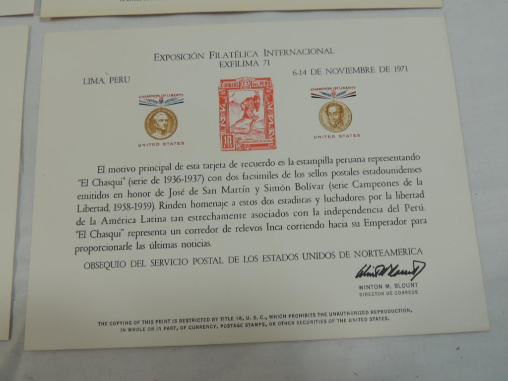 FOUR SOUVENIR CARDS ISSUED TO HONOR THE ANNIVERSARY OF CARIOUS STAMPS. AS SHOWN SEE PHOTO FOR MORE DETAILS.