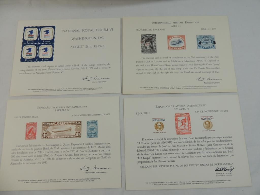 FOUR SOUVENIR CARDS ISSUED TO HONOR THE ANNIVERSARY OF CARIOUS STAMPS. AS SHOWN SEE PHOTO FOR MORE DETAILS.