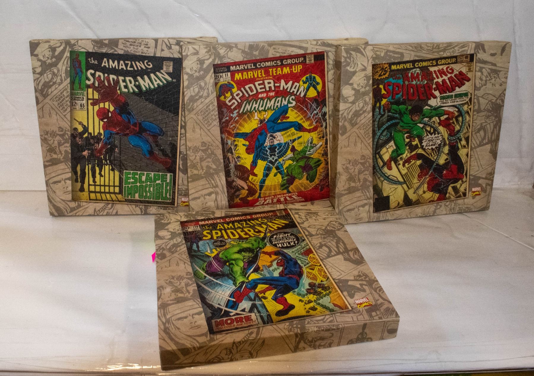 4 SPIDERMAN ''COMIC'' WALL HANGINGS 12"X12"