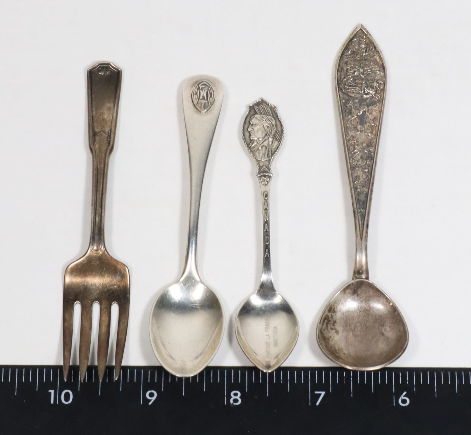4 STAMPED STERLING SILVER SPOONS, ONE IS BIRKS