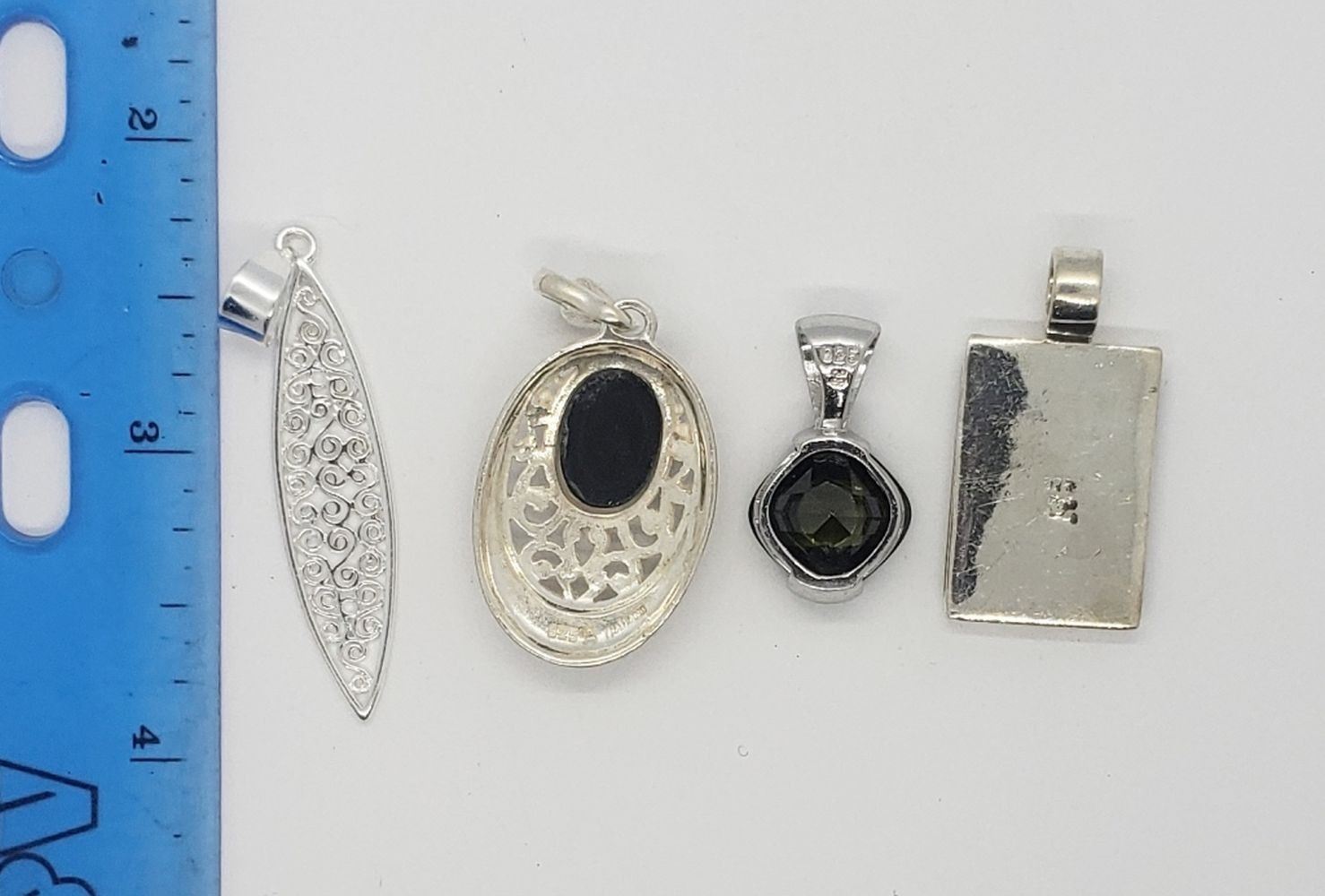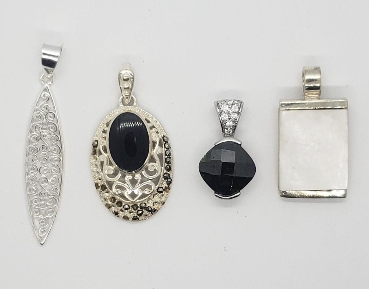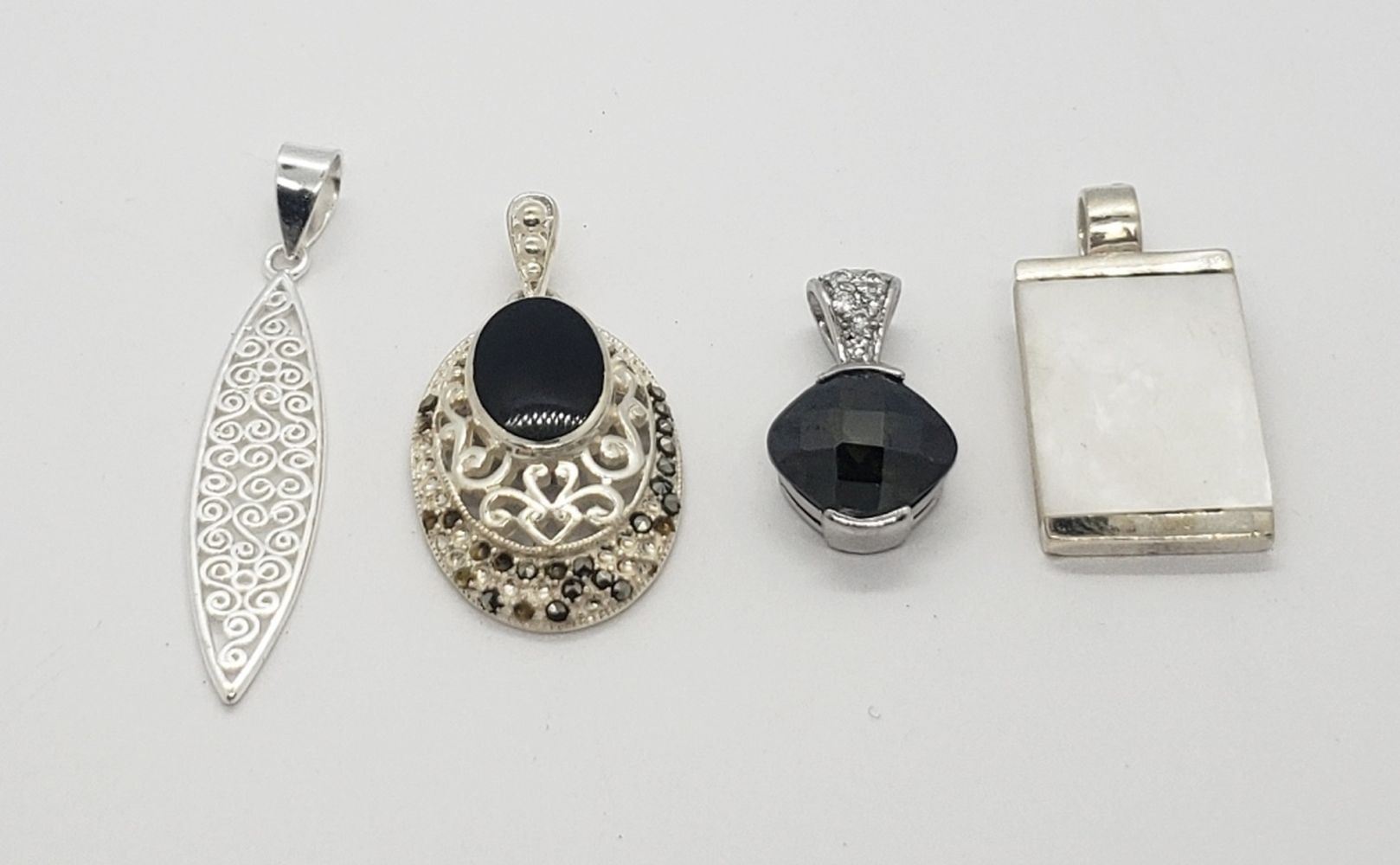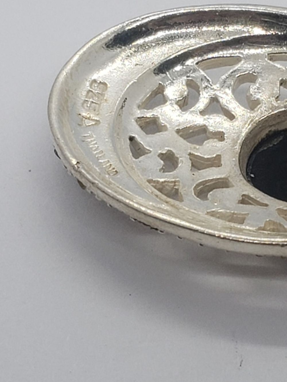 BLACK ONYX-MARCASITE-ABILONE INLAY-GREEN STONE. TOTAL 11.7 NDWT