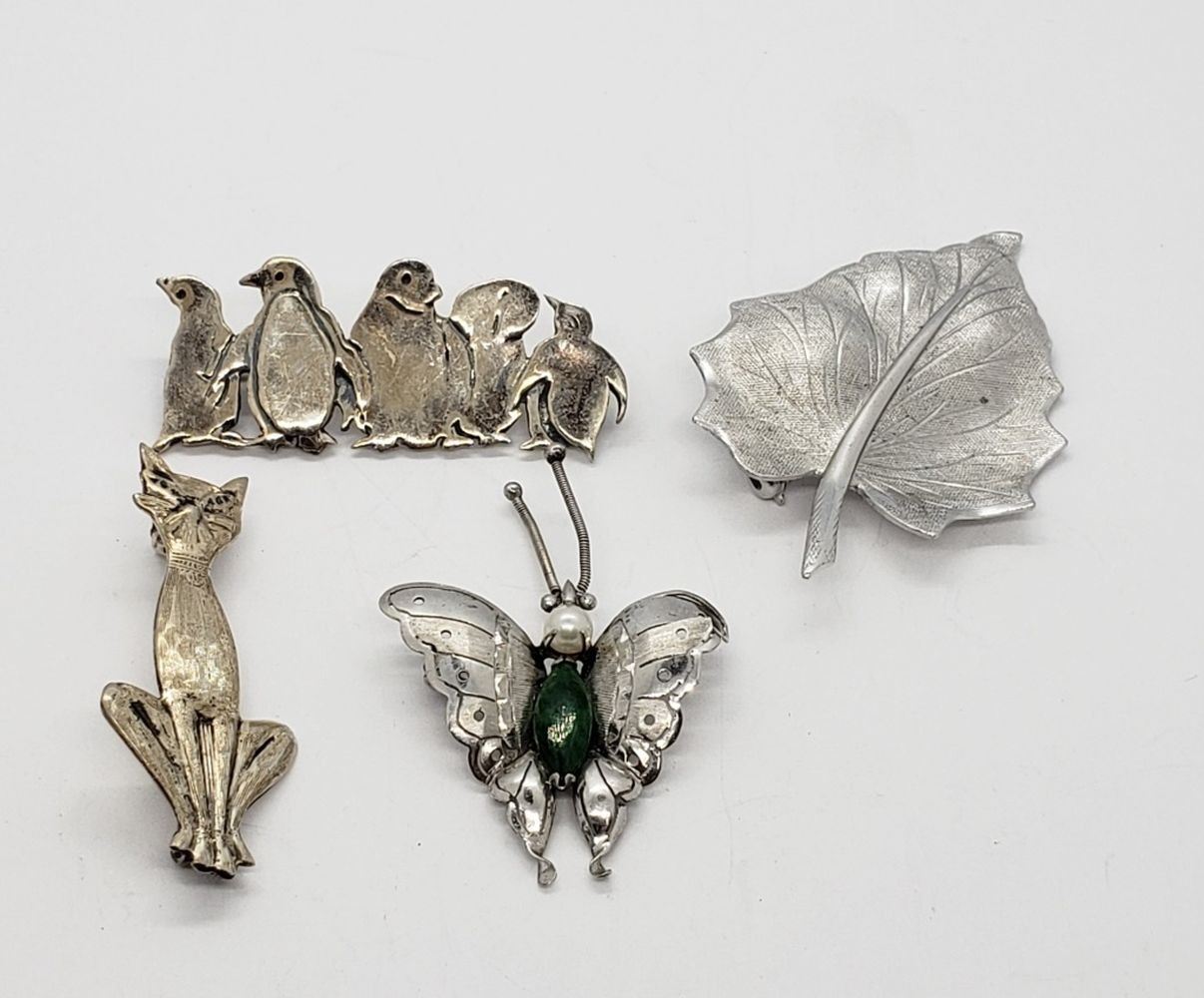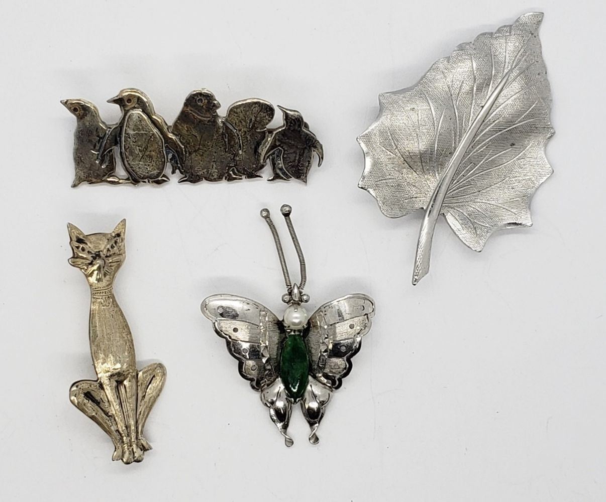 WITH JADE-LIKE AND FAUX PEARL ACCENTS (1)CAT & (1)PENGUIN CLUSTER. TOTAL 11.8 DWT