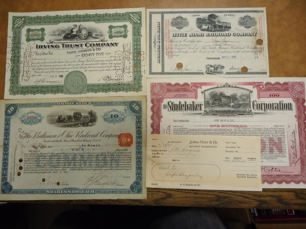 1915 LITTLE MIAMI RAILROAD COMPANY, 1901 BALTIMORE AND OHIO RAILROAD COMPANY, 1929 IRVING TRUST COMPANY AND 1935 STUDEBAKER CORP. WITH SECURITY WITHDRAWAL PAPERS