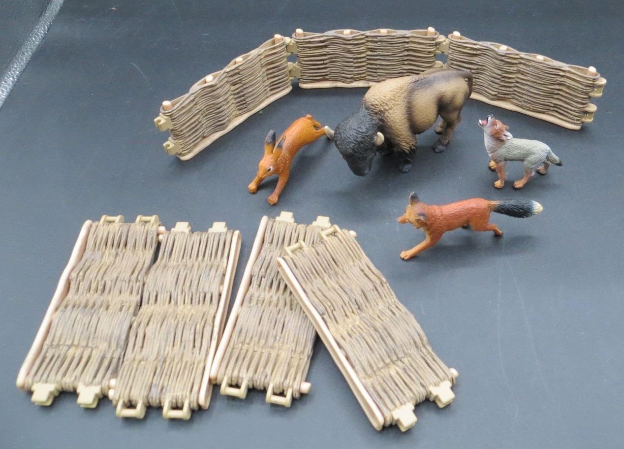 4 Safari Limited Animals Plus 7 Pieces of Schleich Connecting Fence