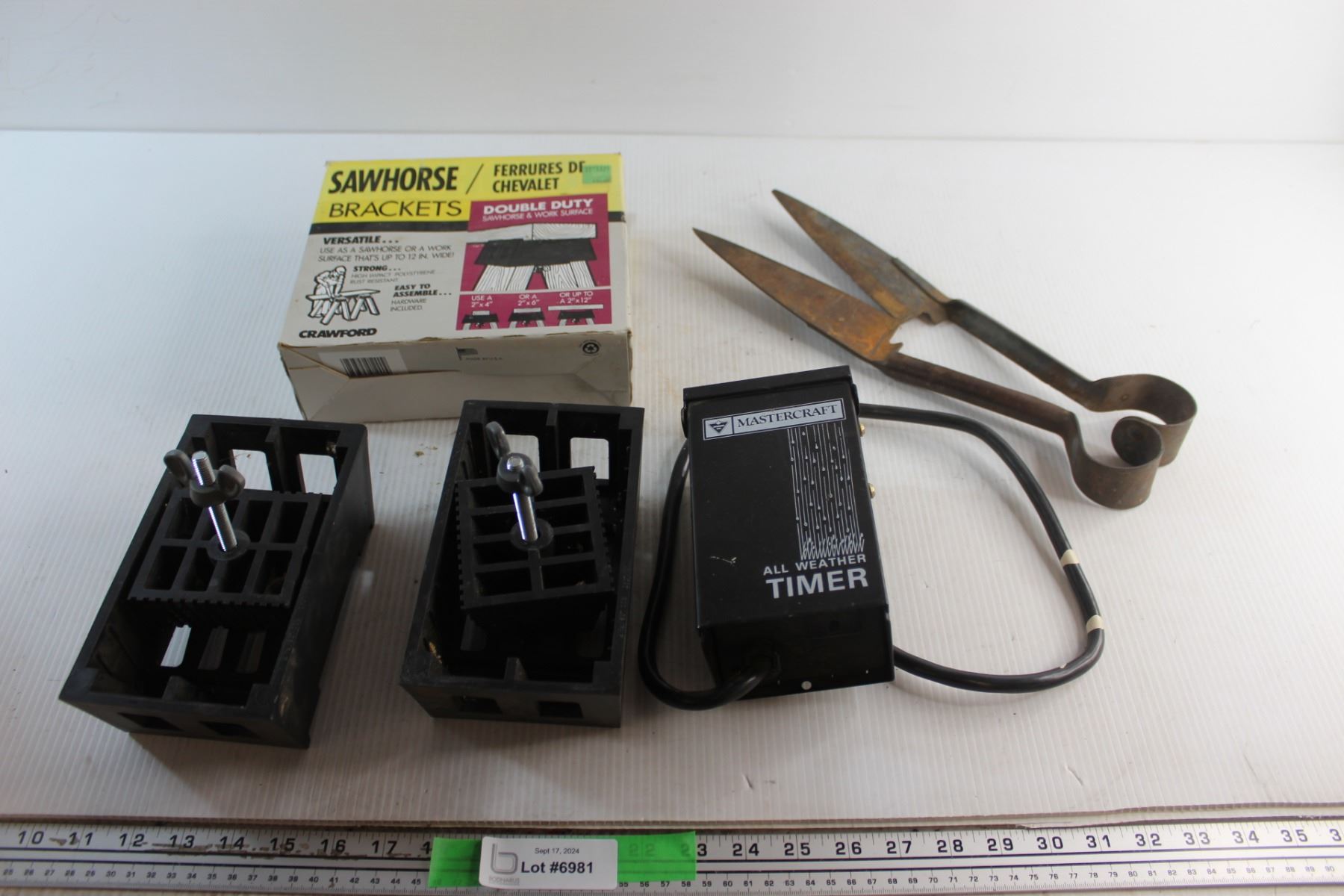 (4) Sawhorse Brackets, Sheep Sheers and Mastercraft All Weather Timer