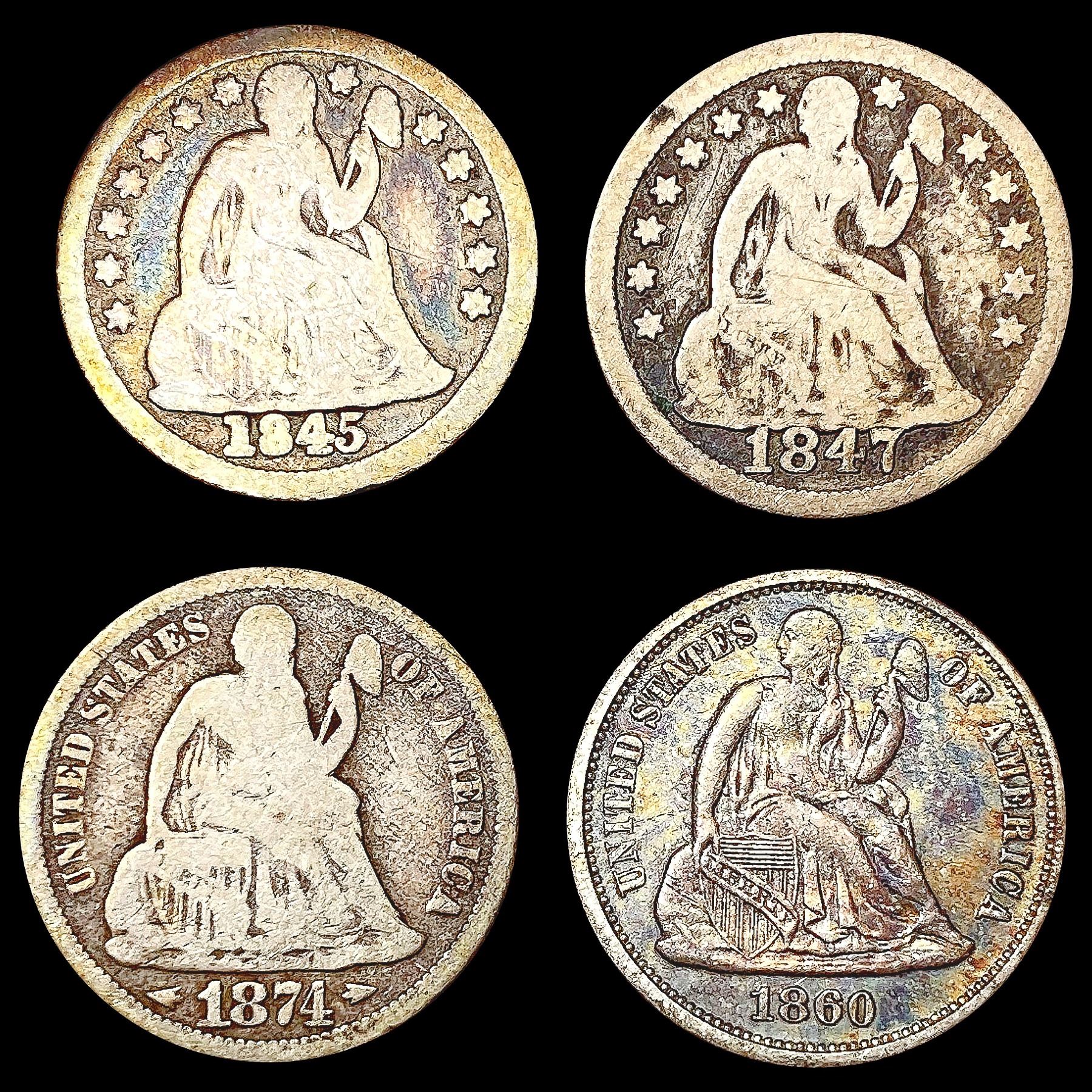 [4] Seated Lib Dimes [1845, 1847, 1860, 1874] LIGH