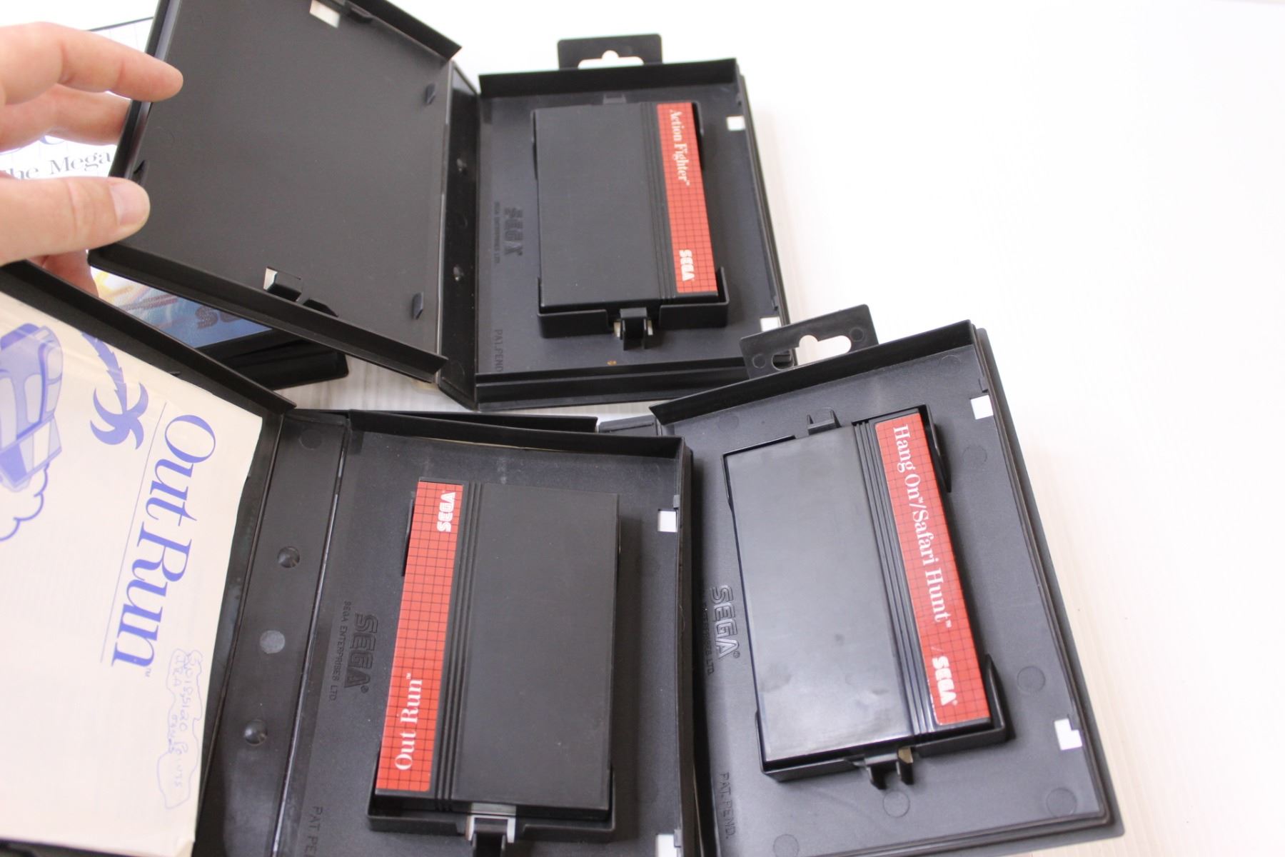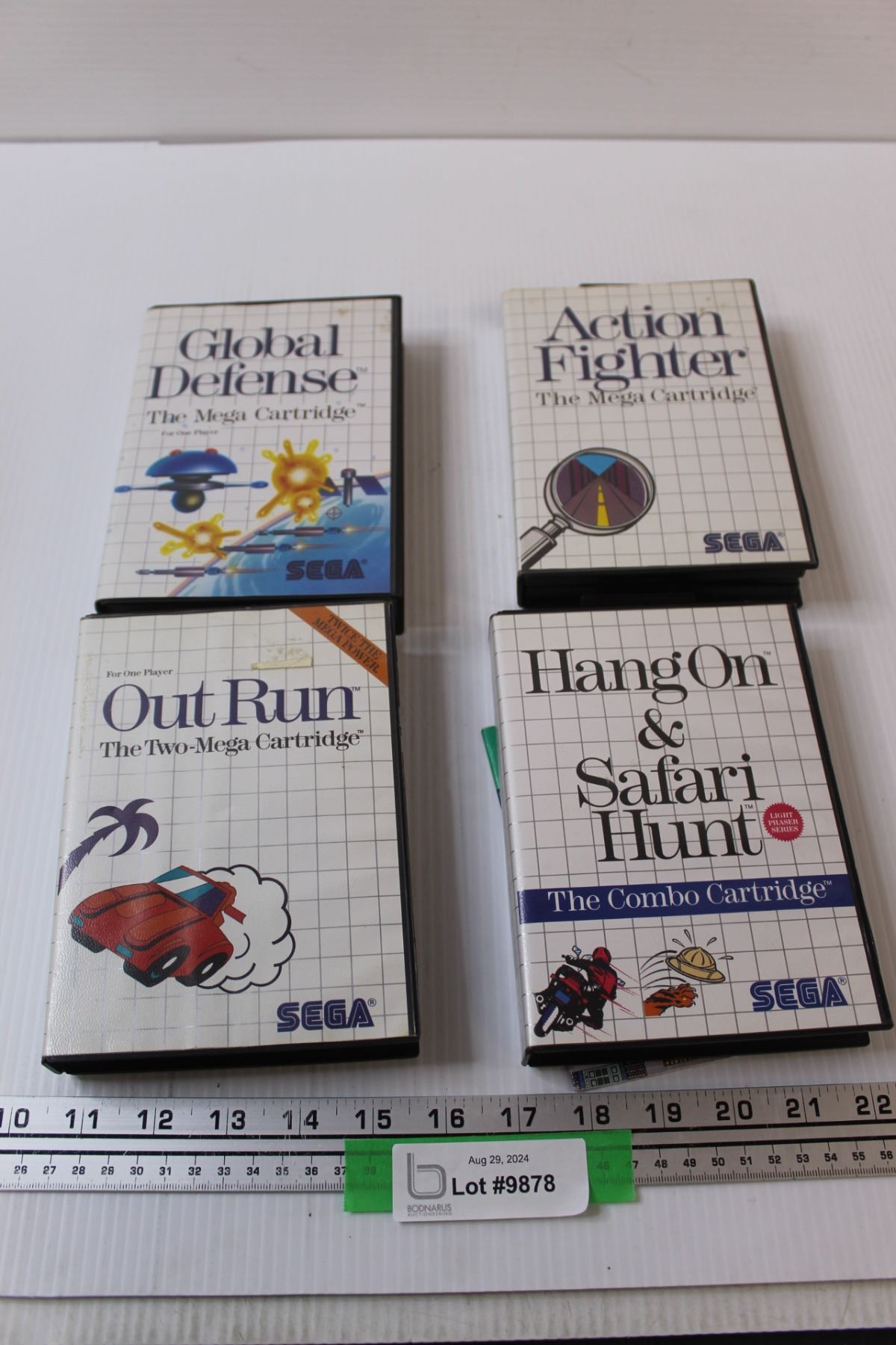 (4) Sega Video Games: Out Run, Global Defense, Action Fighter, Hangon & Safari Hunt