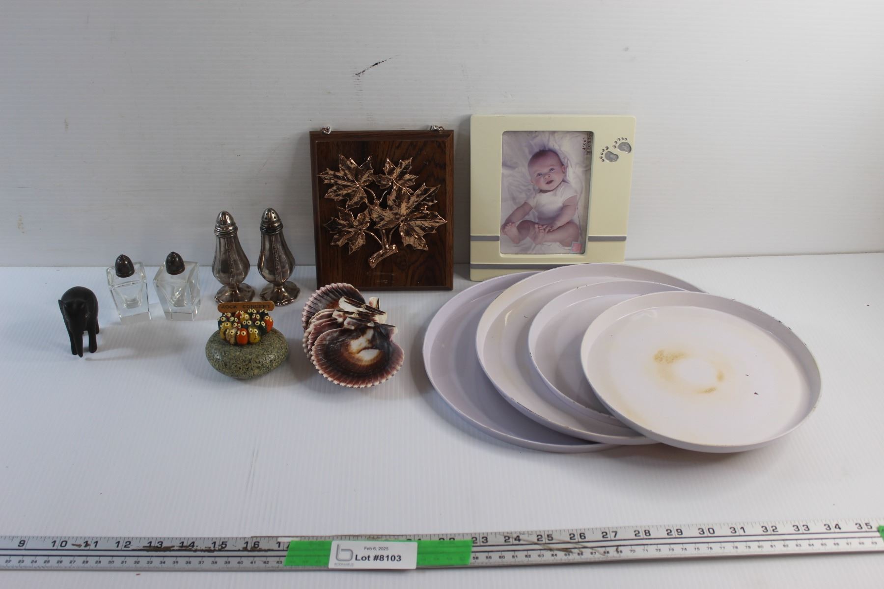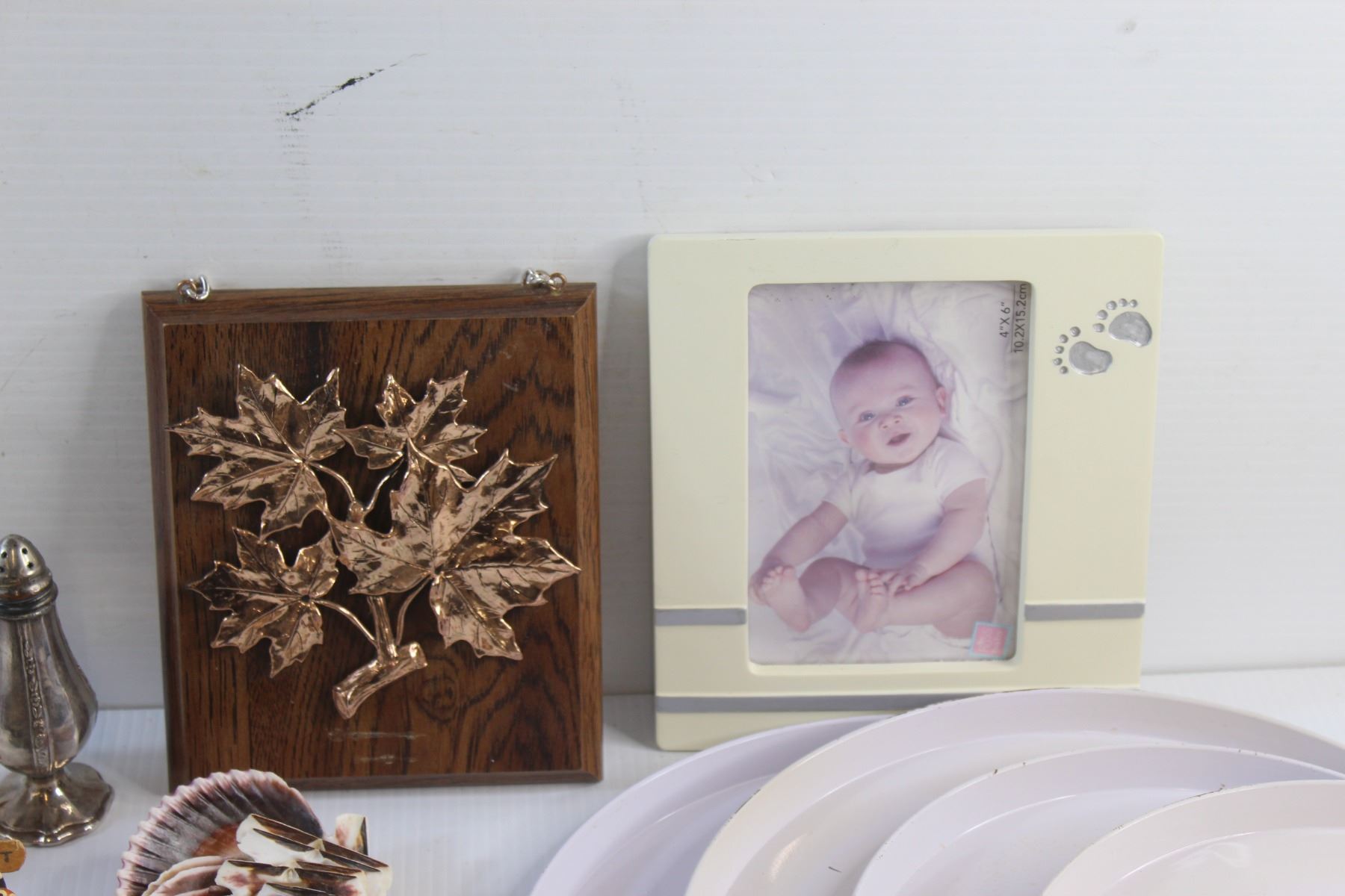 (4) Serving Trays, Salt & Pepper Shakers, Photo Frame 4'' x 6'', Sea Shells and Misc.