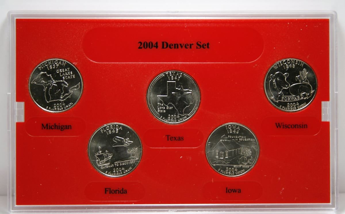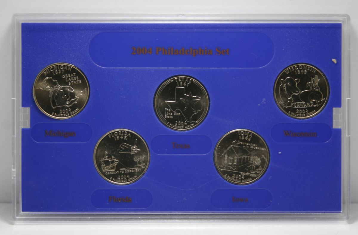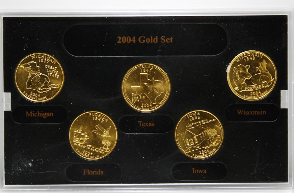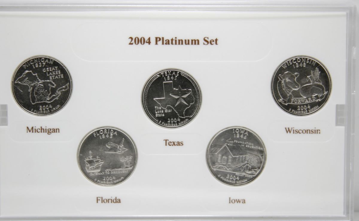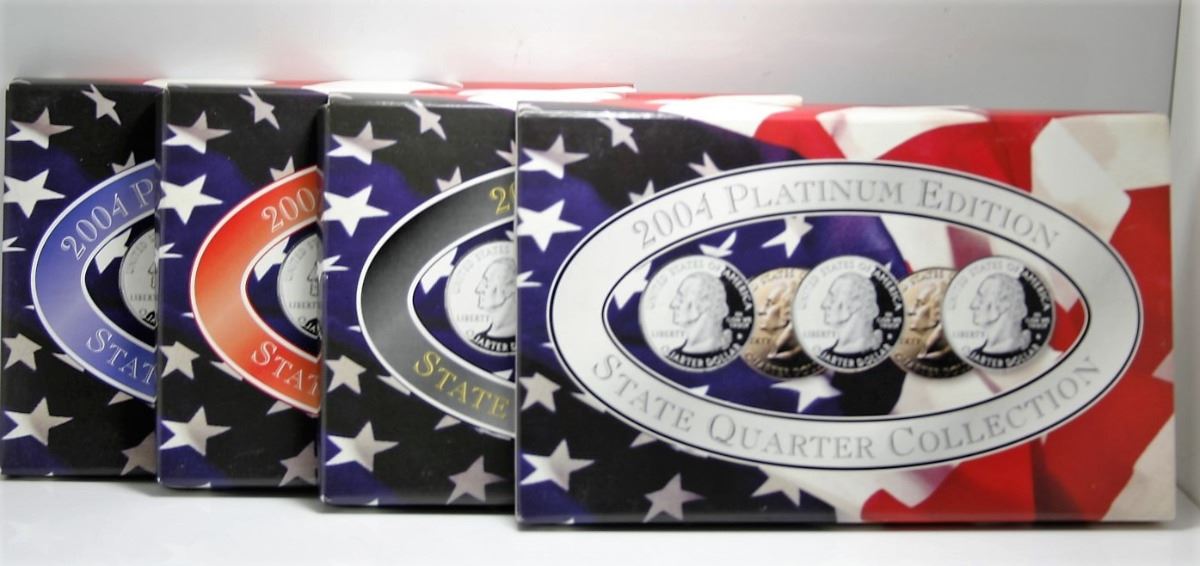 4 Assorted Sets of 2004 United States State Quarter Sets - Platinum Edition, Gold Edition, Denver Mint Edition, Philadelphia Mint Edition