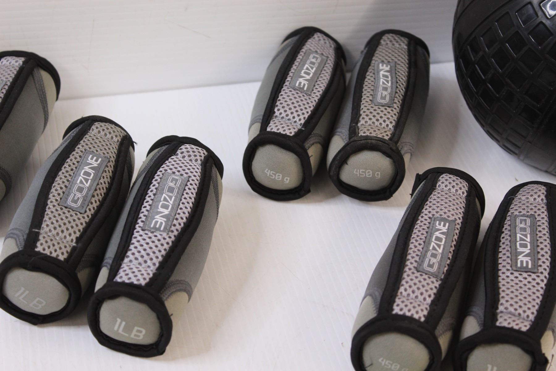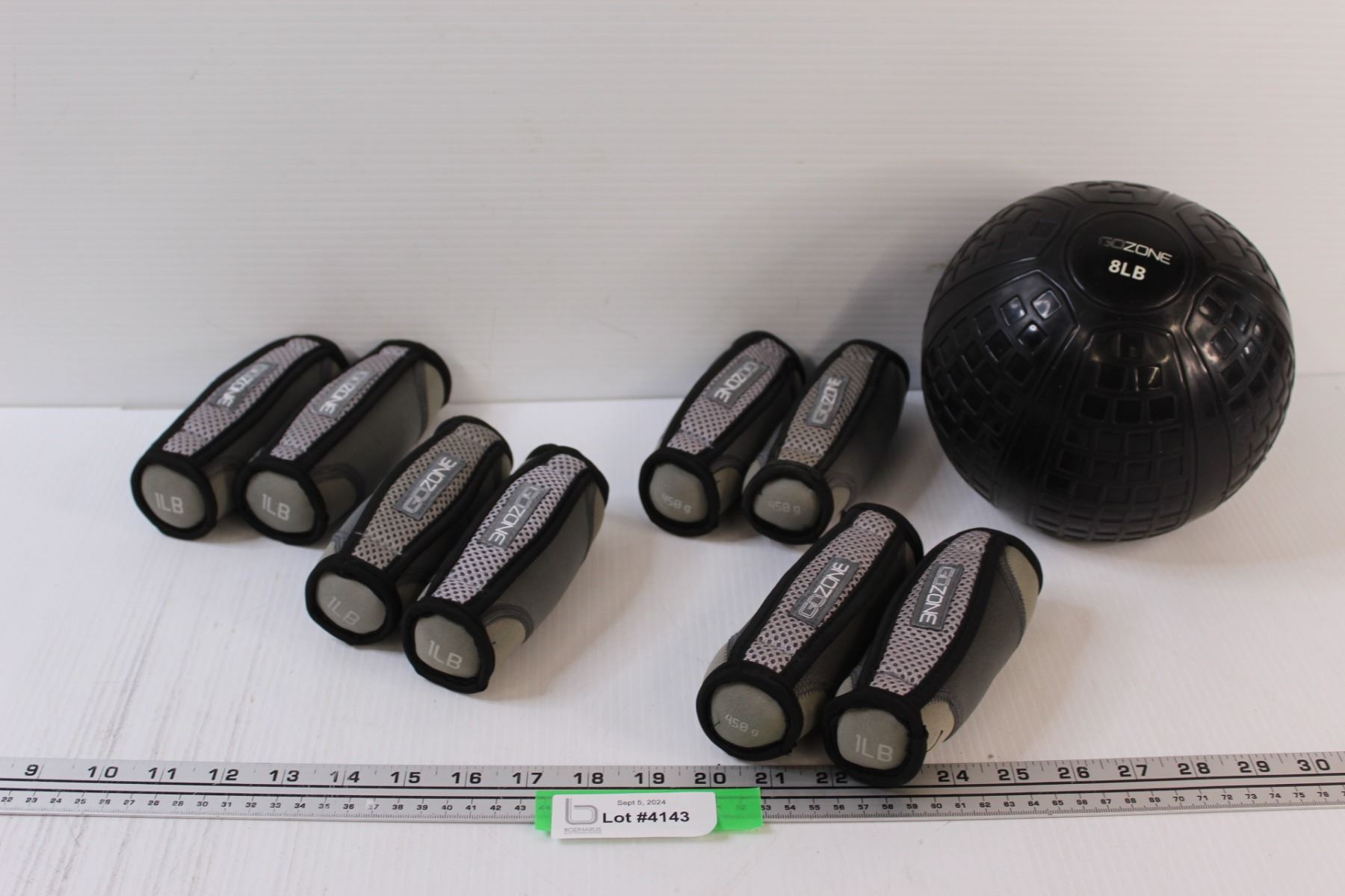 (4) Sets of Walking 1lb Weights & (1) 8lb Workout Ball