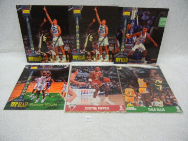 4-Signature Basketball Rookie Cards &2 NBA Large Hoop Cards
