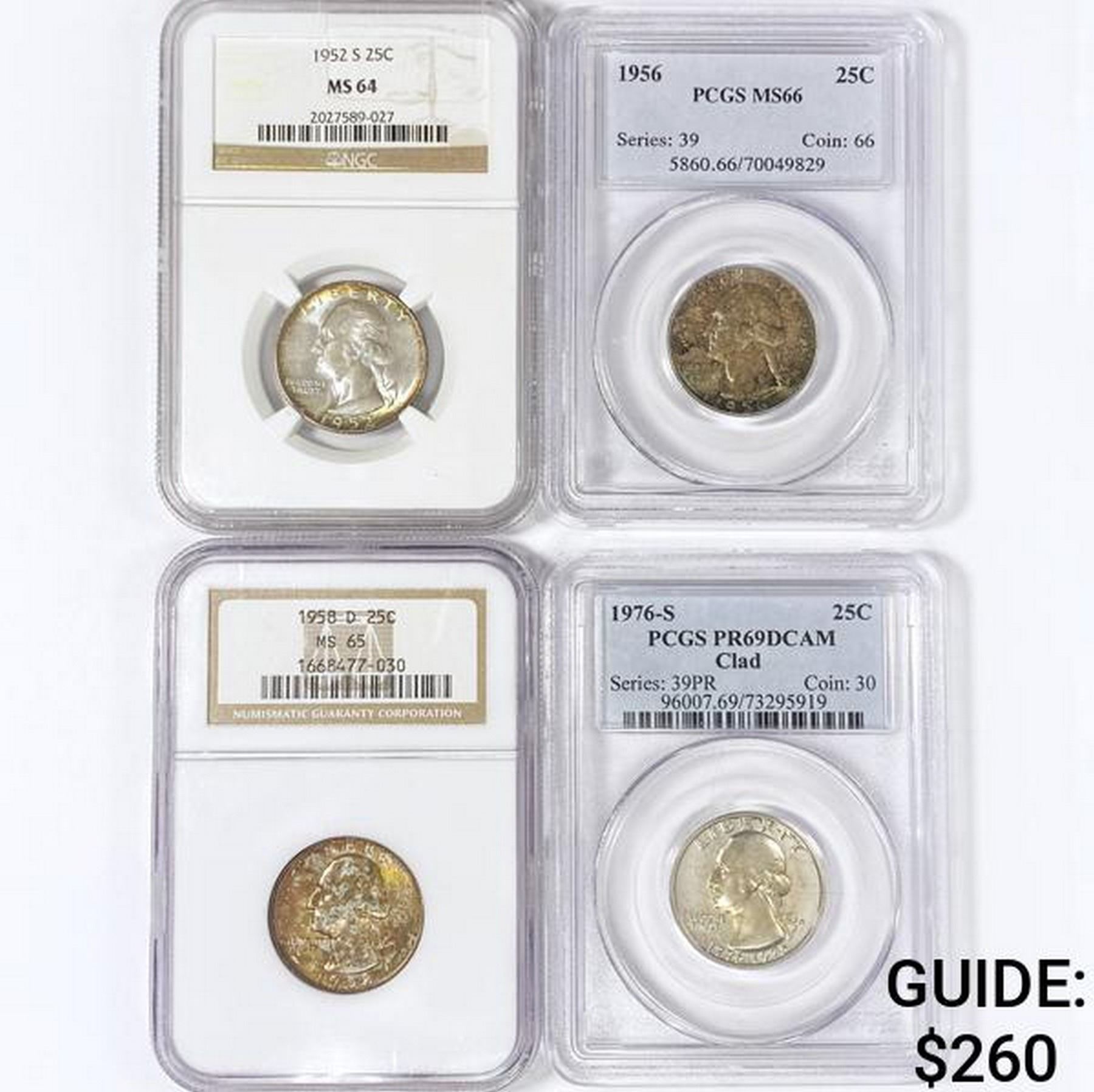 (4) Silver Wash. Quarters PCGS/NGC MS/PR (1952-S,