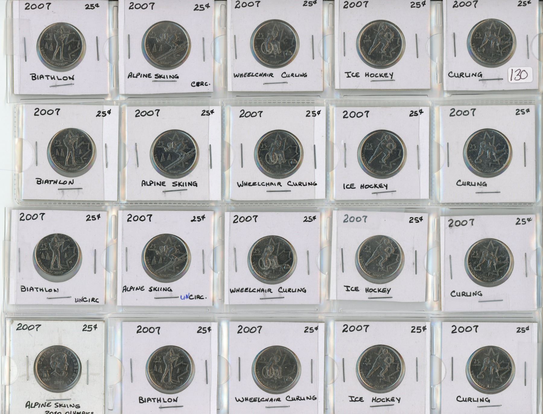 4 Sleeves of assorted Canadian 25 cent coins