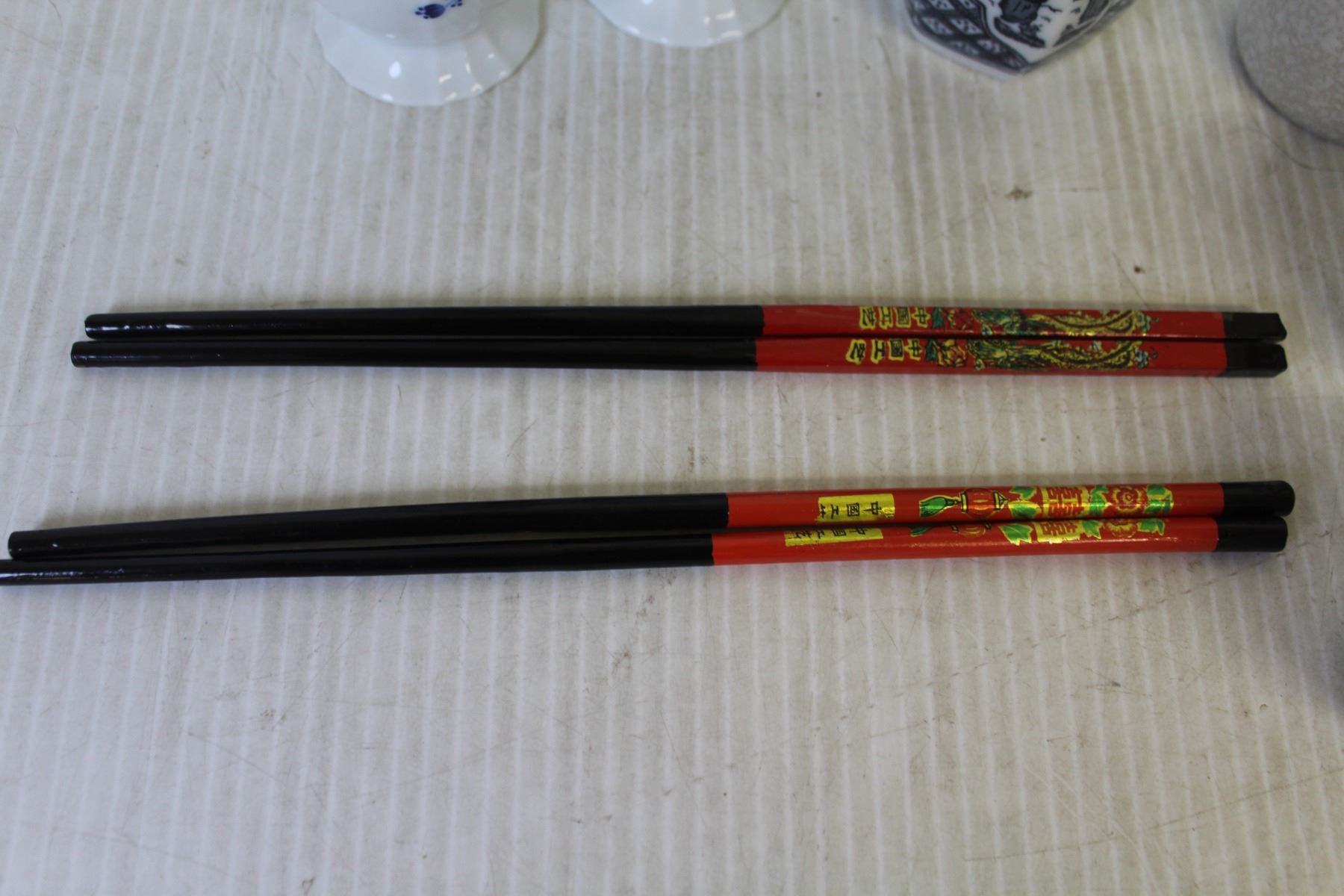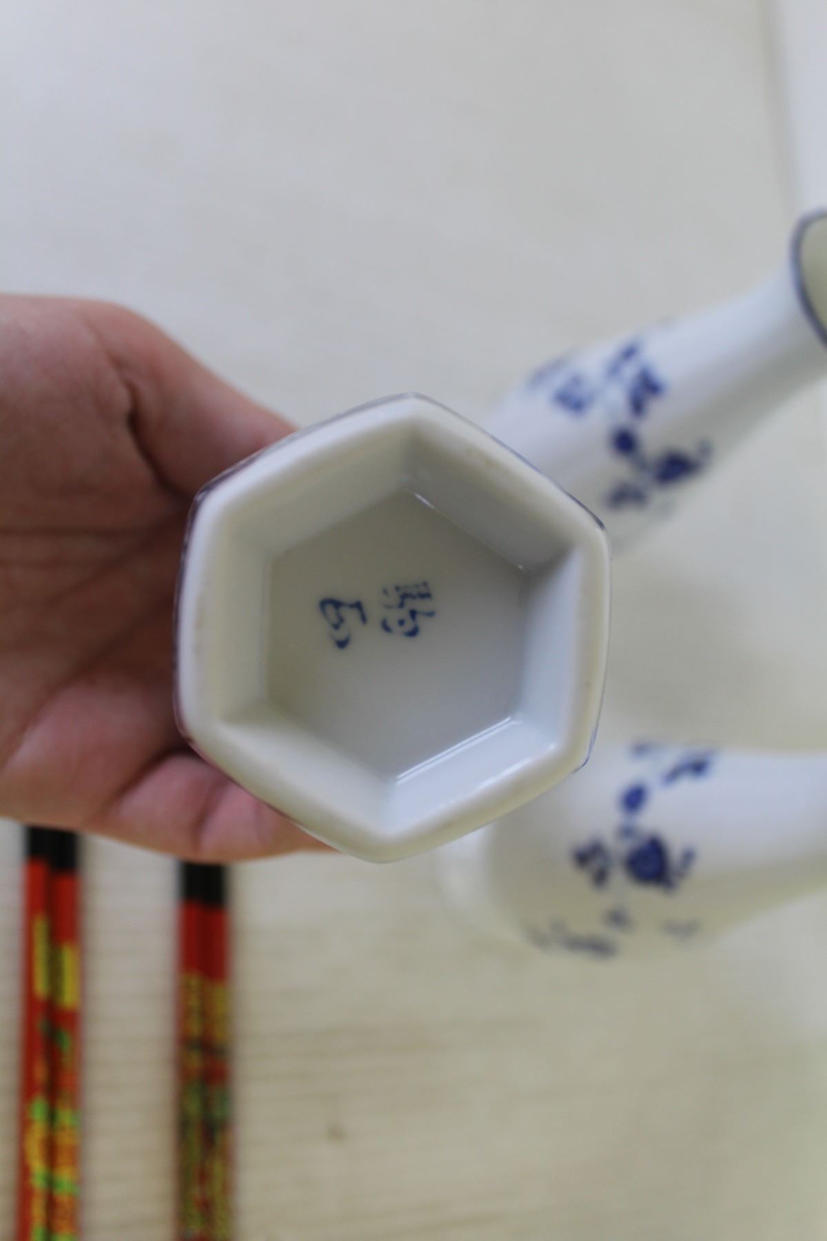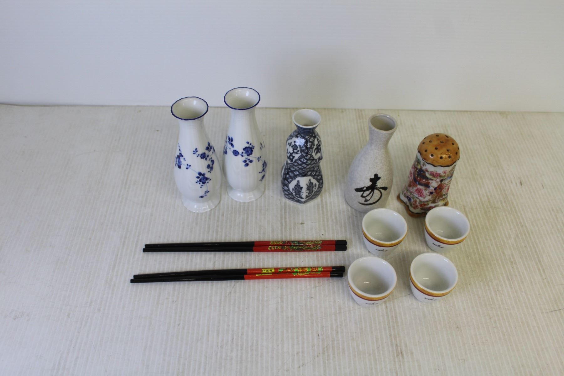 (4) Small Teacups + (4) Vases + Shaker + (2) set of Chop Sticks