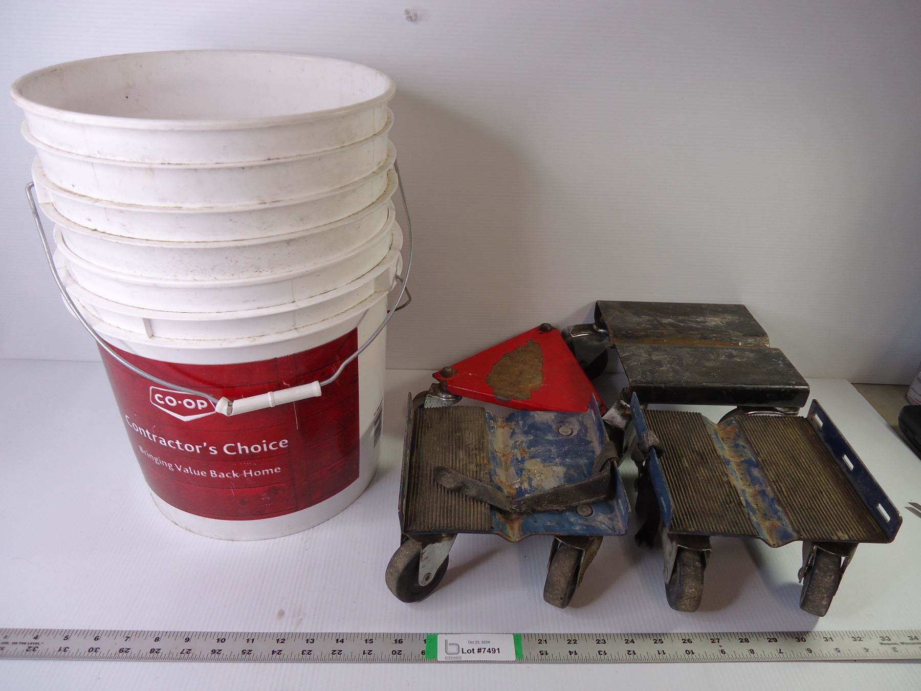 (4) Snowmobile Dollies and (2) Plastic Pails