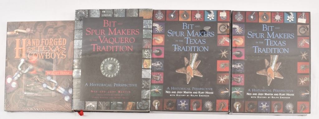 (3) "Bit and Spur-Makers in the Vaquero Tradition" by Ned and Jody Martin, includes signed 1997 first edition in very good condition, the other two are still sealed. "Hand Forged for Texas Cowboys" by Kurt House.