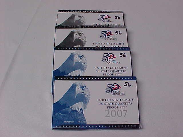 4 Statehood Quarter Proof Sets: 2007, 2008, 2007 Silver, 2008 Silver