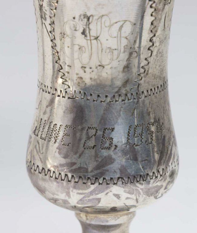 With etched designs. Approx. 9.78 ozt. Largest approx. 5 1/2" H.