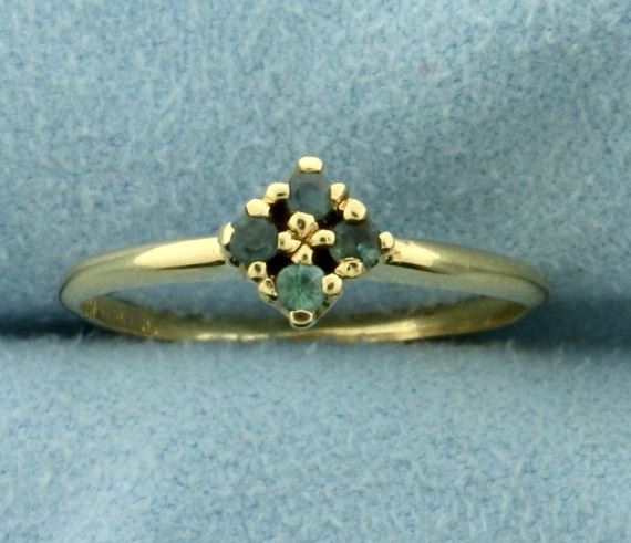 In 14K Yellow Gold. Contains four 2mm round cut Alexandrite gemstones that change color from green to red depending on light source. Set in diamond pattern. 6.3mm wide on top pattern. Size 5 3/4. 1.4g