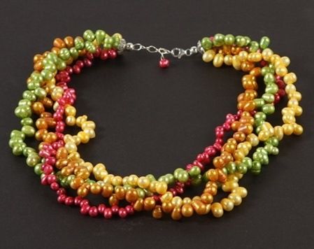 Multi-Color 4-Strand Genuine Cultured Pearl Necklace - Gold, Yellow, Green & Pink - .925 Sterling Lobster Clasp - 4-9 Mm Pearls