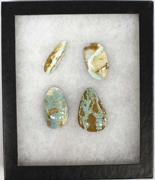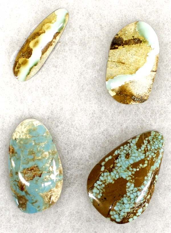 4 Stunning Turquoise Cabochons, includes: A. Royston 10 carat total wt. B. #8 Mine 36 carat total wt. C. Evans Mine Baja California 35 carat total wt. D. Royston 25 carat total wt., largest measures 1.5'' x 1'', Gorgeous colors!