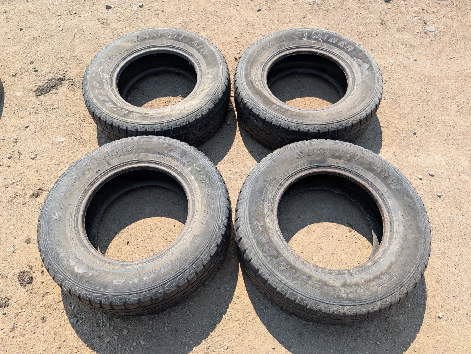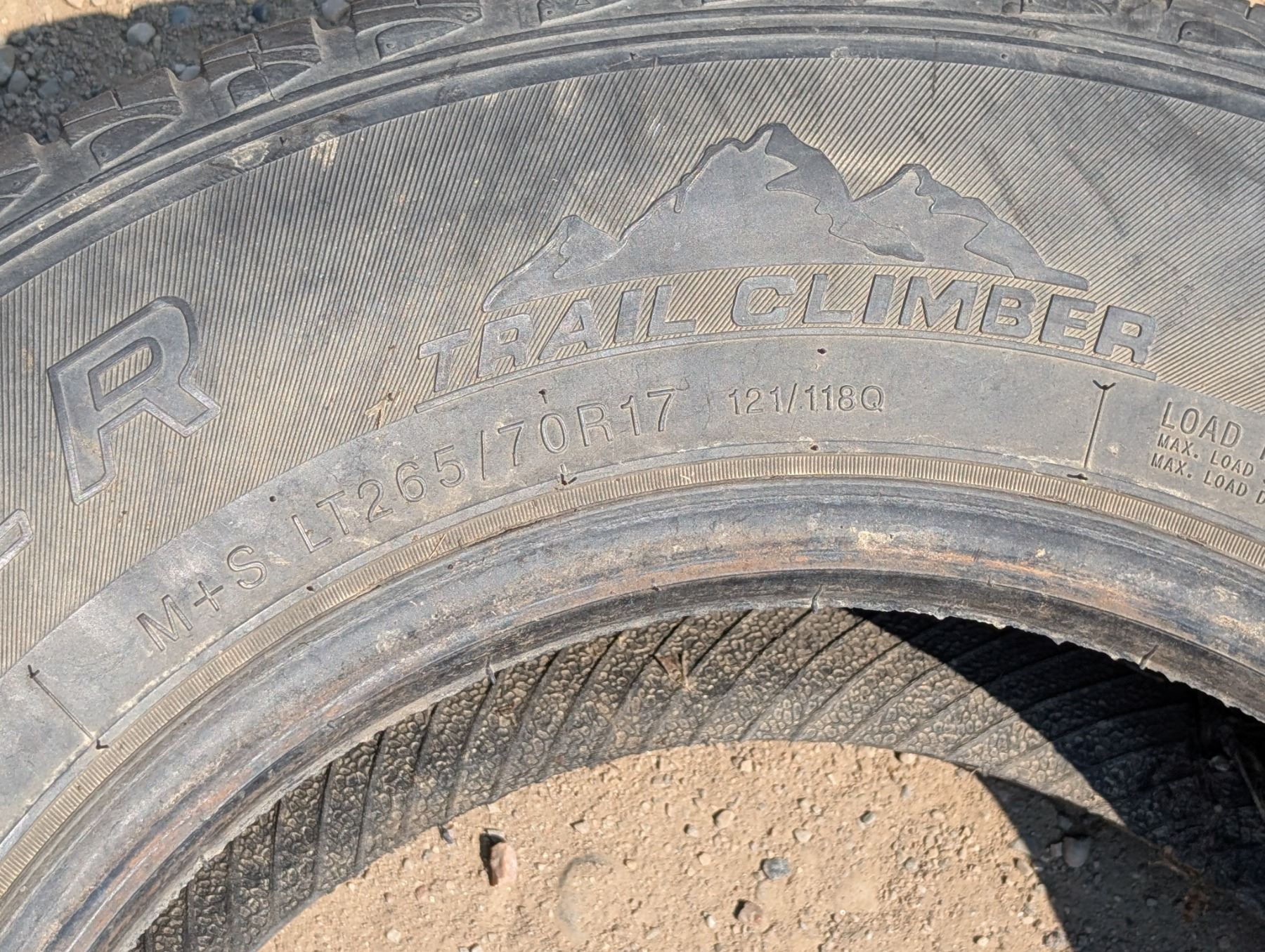 (4) Summit 121/1180 Load Range E LT265/70R17 Tires (Bald Spots on them) Plus (1) Michelin Tire