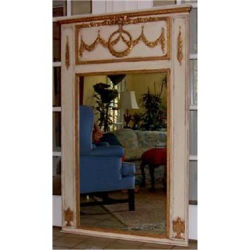 </font></strong>Beautiful Lg 4 swag Trumeau for the dining room or large bath. Perfect over that foyer table in the foyer. Creme with gilded trim. Trumeau Mirror handmade with four graceful swags and floral drops at the sides. Size is 39x65 inches overall with the actual mirror measuring 28x44 inches. A beautiful focal point for that special room. A designers delight for the final touch on that house you are doing. The mirror is handmade and signed by the artist, P. Brewer