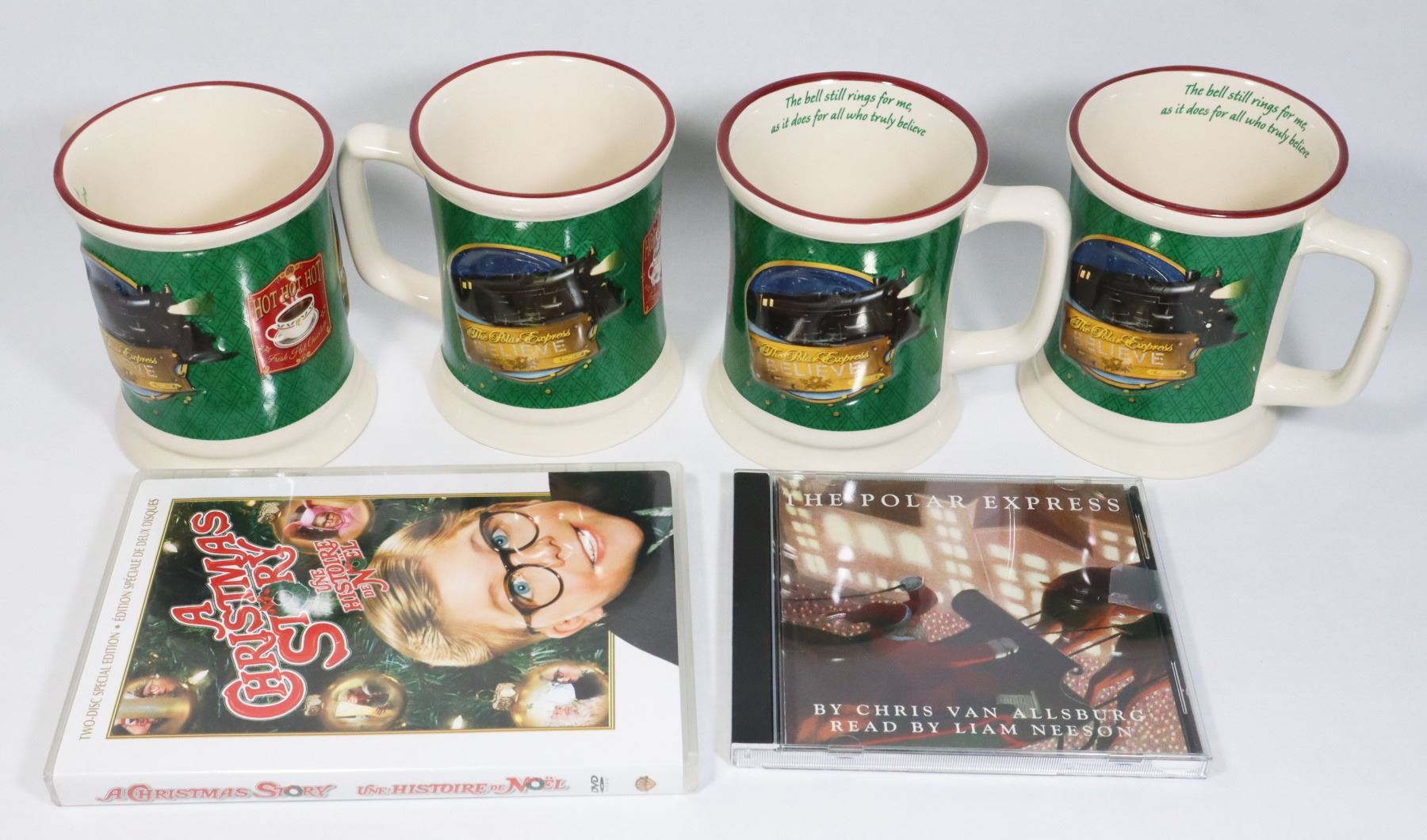 4 THE POLAR EXPRESS MUGS WITH CD, CHRISTMAS STORY