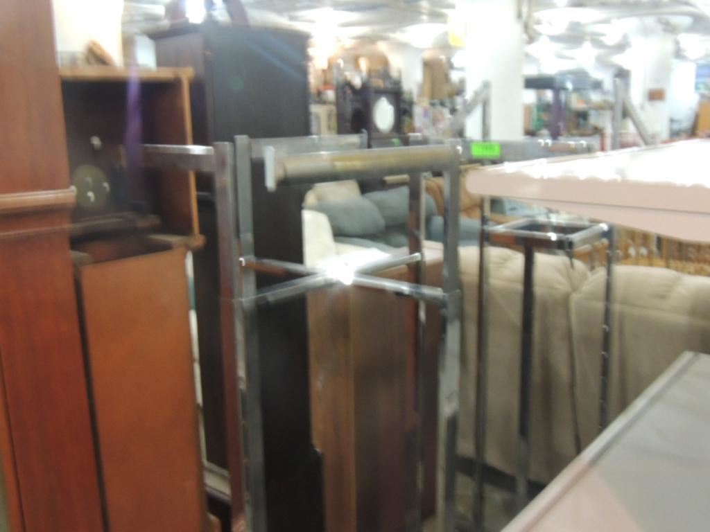 4 TIER HOT BOUTIQUE DISPLAY RACK CLOTHING STORE BOUTIQUE RACK STORE RACK, DISPLAY RACK, SQUARE BASE RACK, CHROME, WHEELS AS SHOWN SEE PHOTO FOR MORE DETAILS.