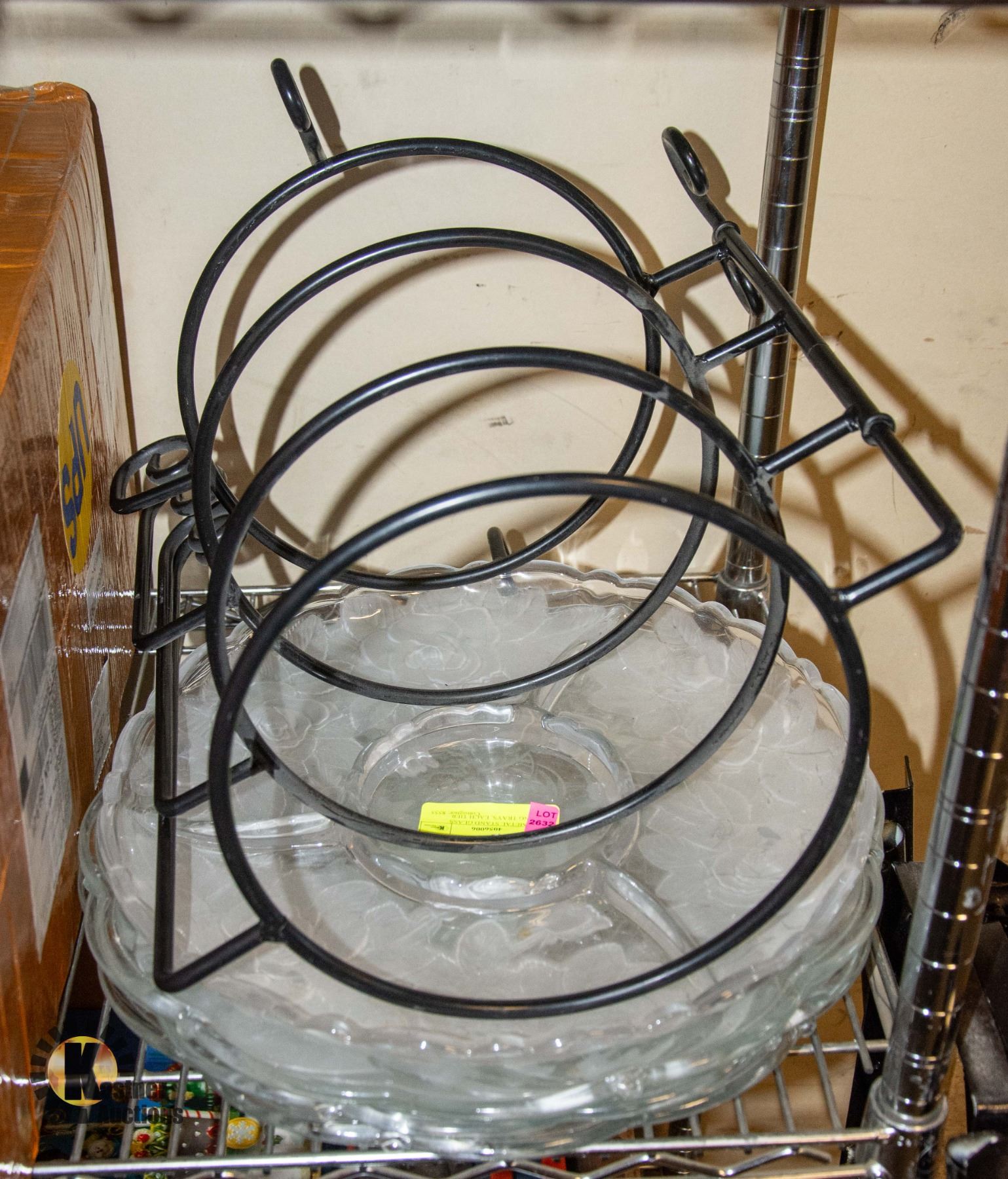 4 TIER METAL STAND GLASS SERVING TRAYS, EACH TIER