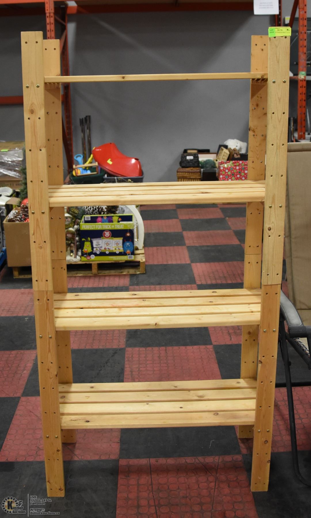 4 TIER PINE STORAGE SHELF, 32" X 63" X 14"