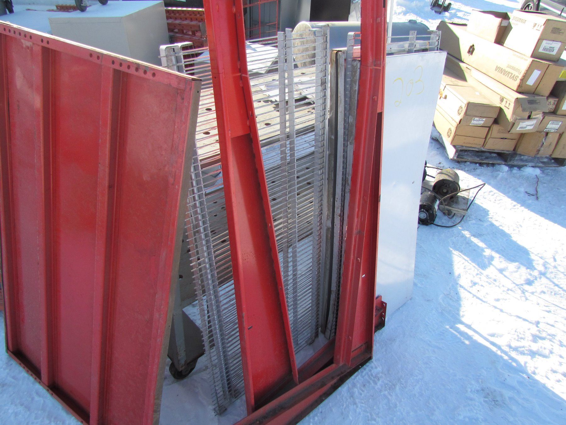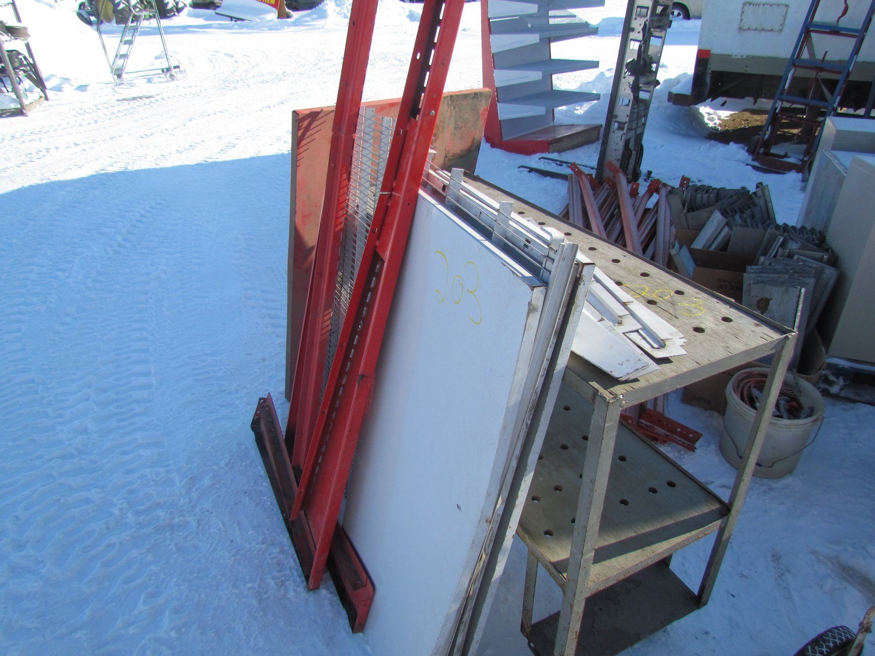 4 TIER STAND (METAL) & WORK TABLE ON CASTORS