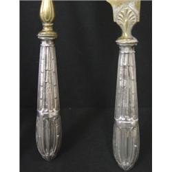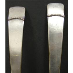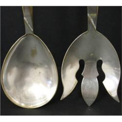4 TOTAL PIECES OF SILVER consisting of 2 piece carving set, one meat fork, & large serving spoon. Carving set has Sterling handles. Meat fork & large serving spoon are silver plate and are hallmarked.