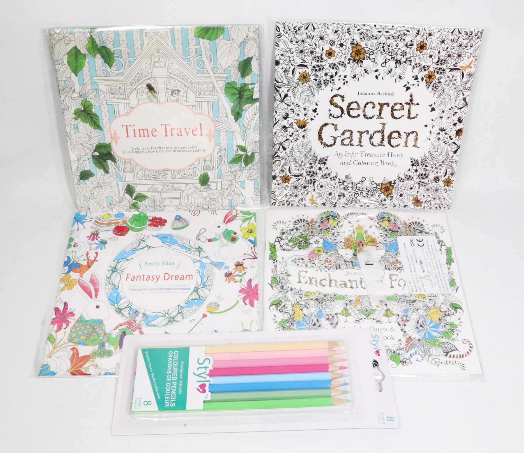 4 TRAVEL COLORING BOOKS WITH PENCIL CRAYONS