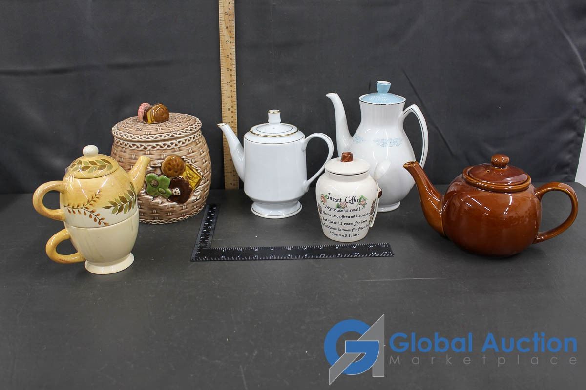 (4) Tea Pots; Coffee Canister & Cookie Jar