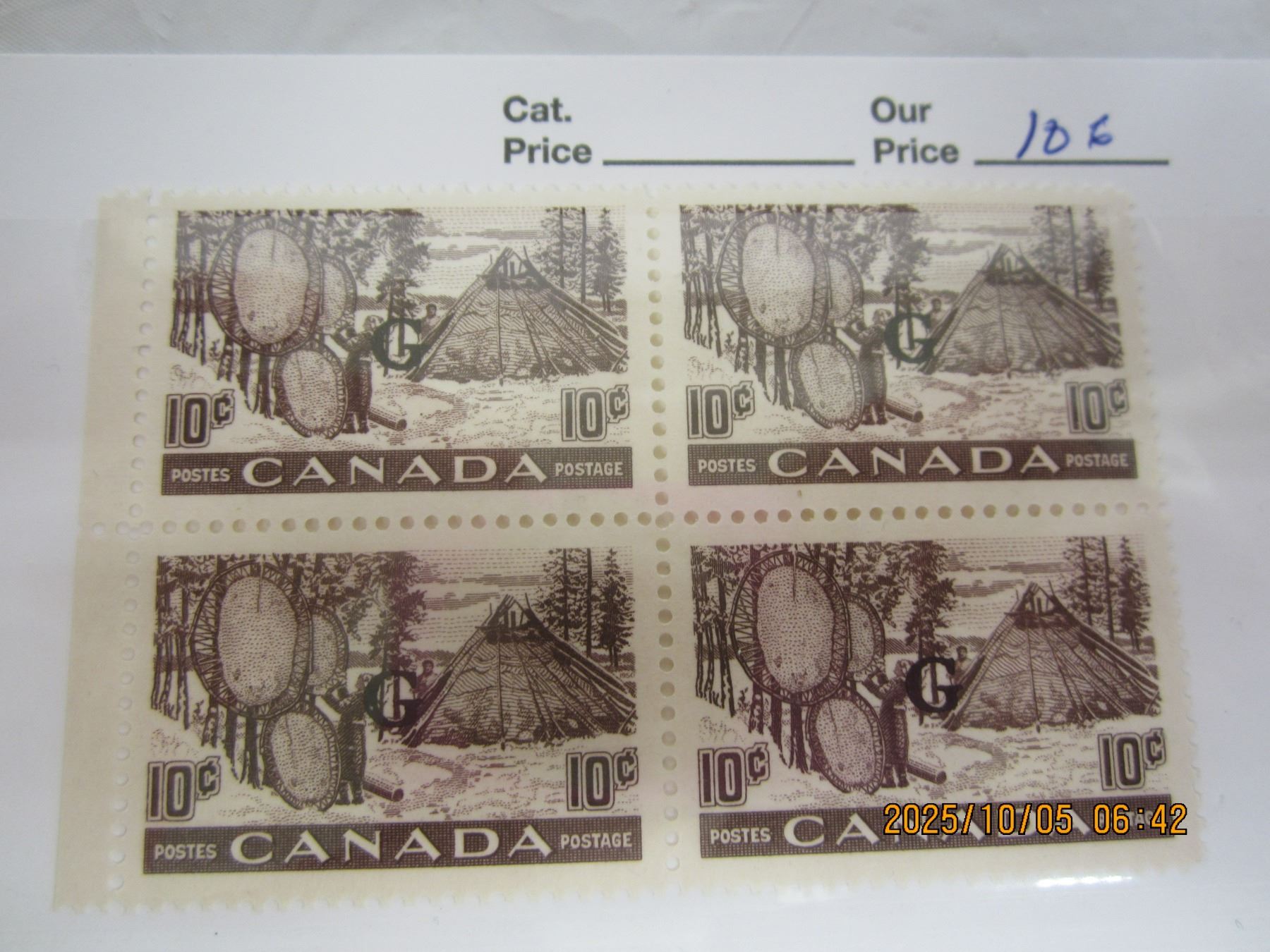 4 Ten Cent Canadian Stamps Fur Trappers Marked with a G MNH OG Never Used