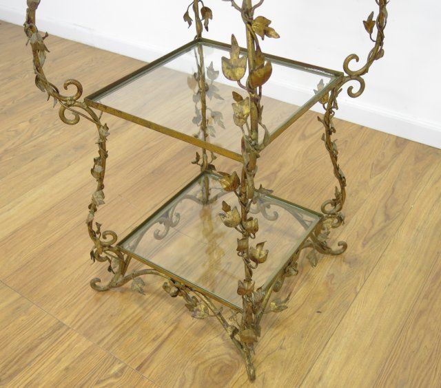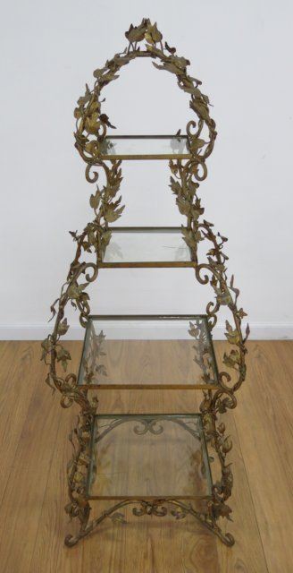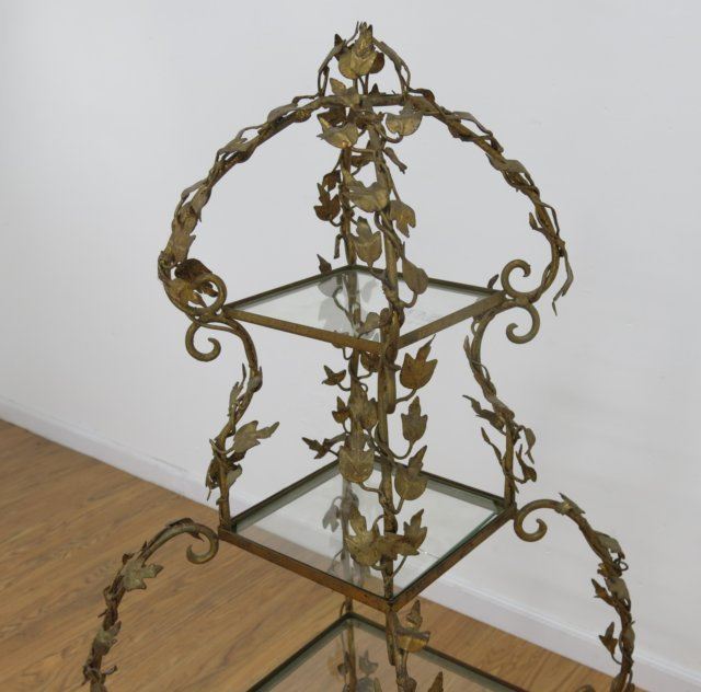 Approx. 52" H x 19" W x 19" D. Crack in glass on second tier.