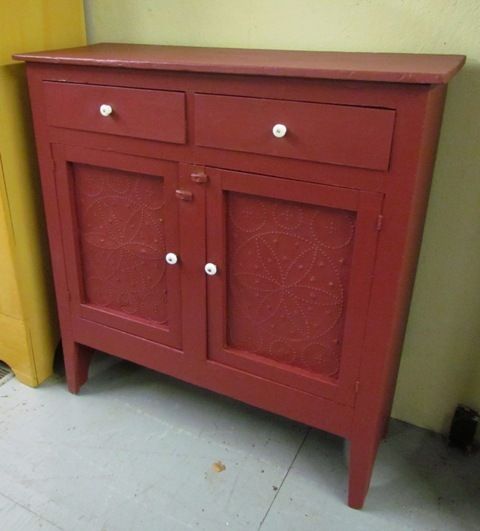 19th Century 4 Tin Pie Safe, 2 drawers over 2 door, Board back - red 47" x 44" x 16"