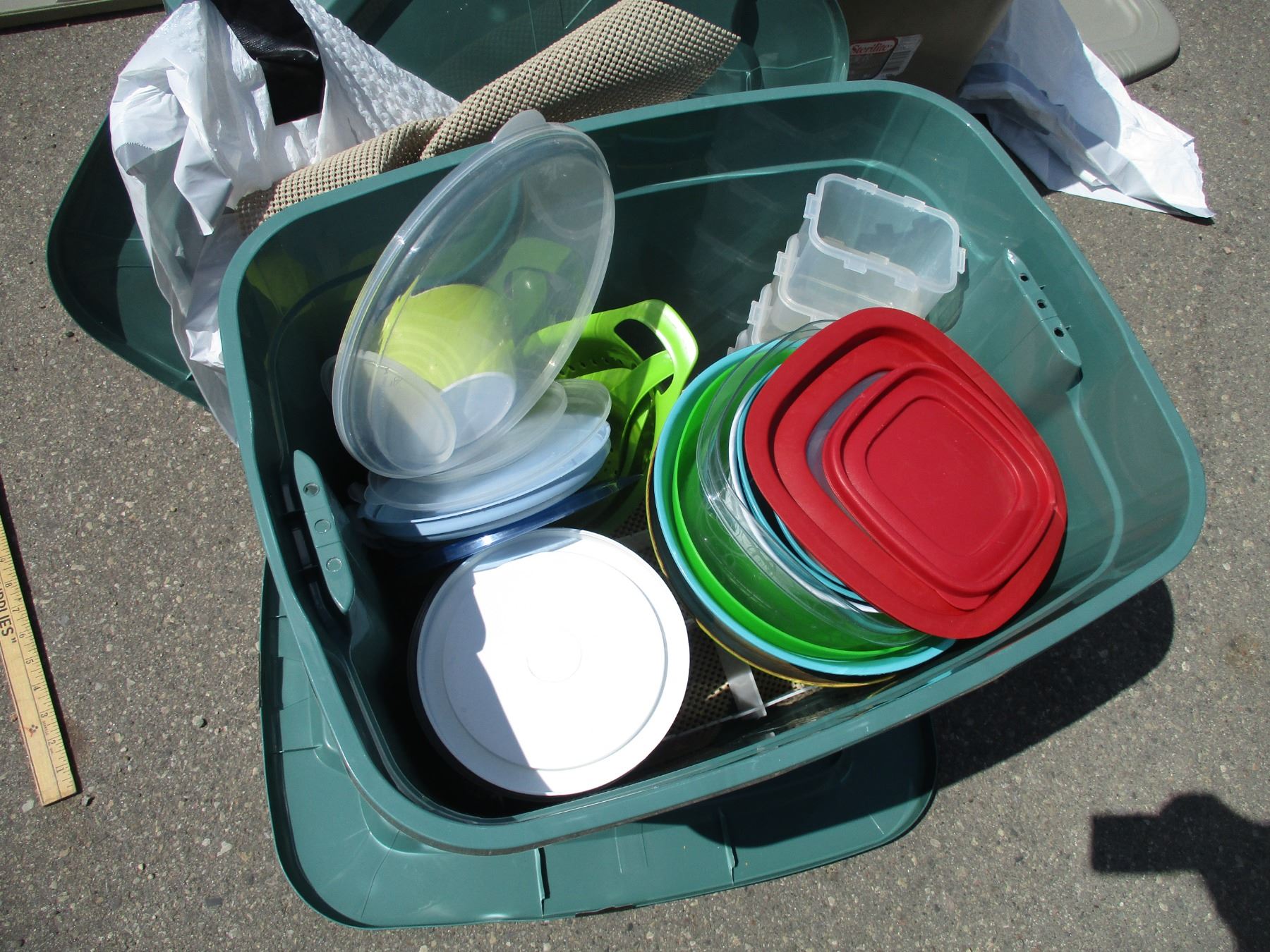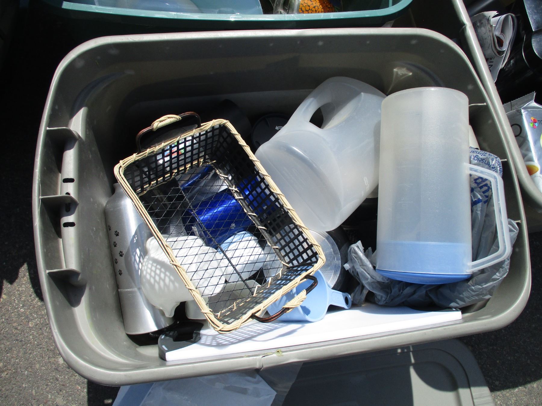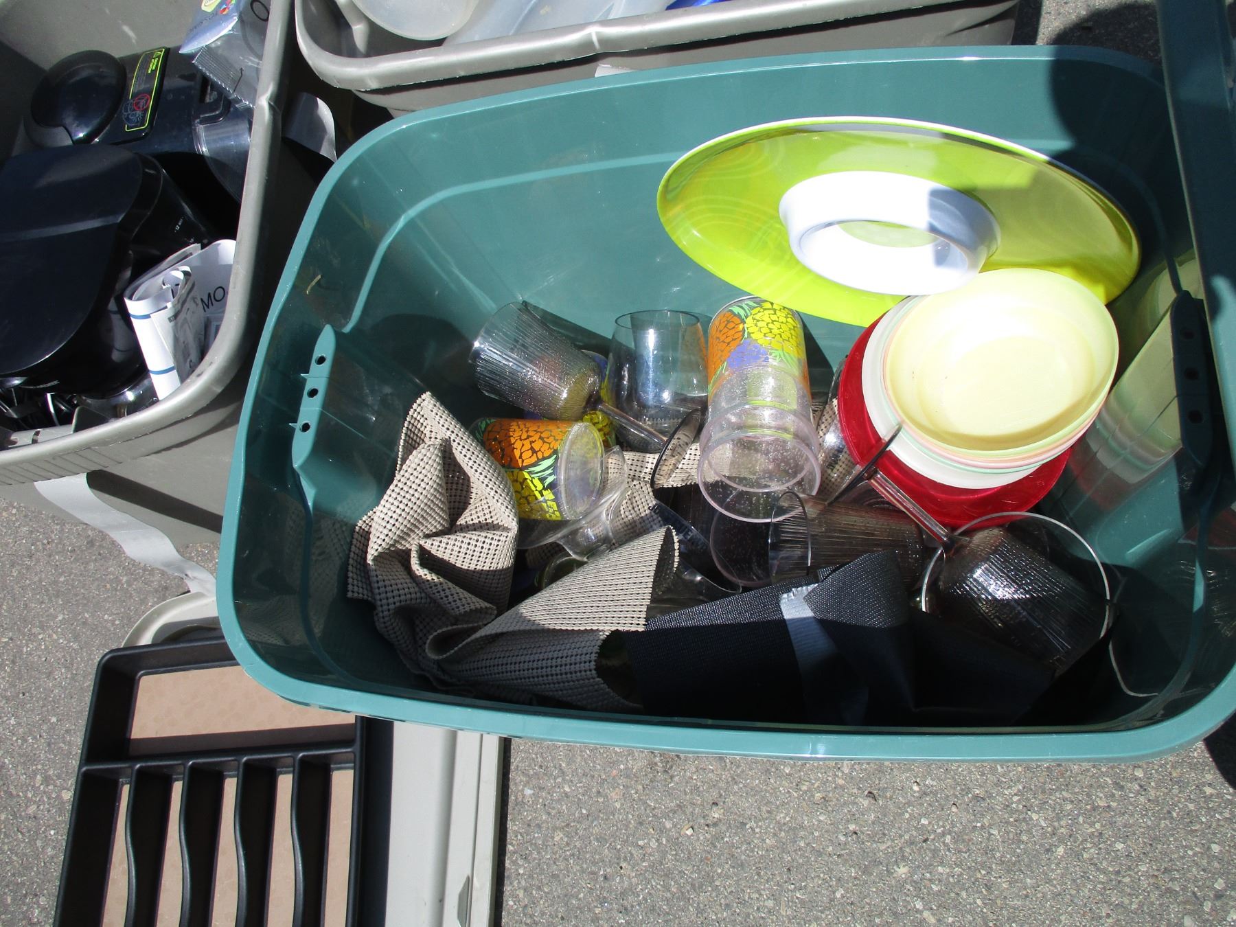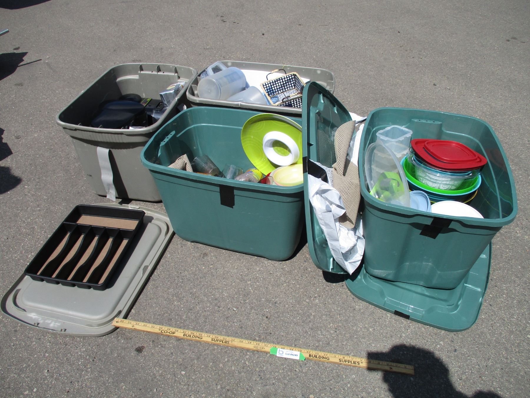 **(4) Totes with Plastic Cups, Bowls, Misc. Kitchen-Related Items