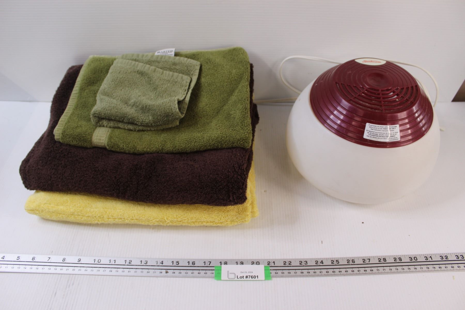 (4)Towels - Various Sizes & Sunbeam Vaporizer, as is