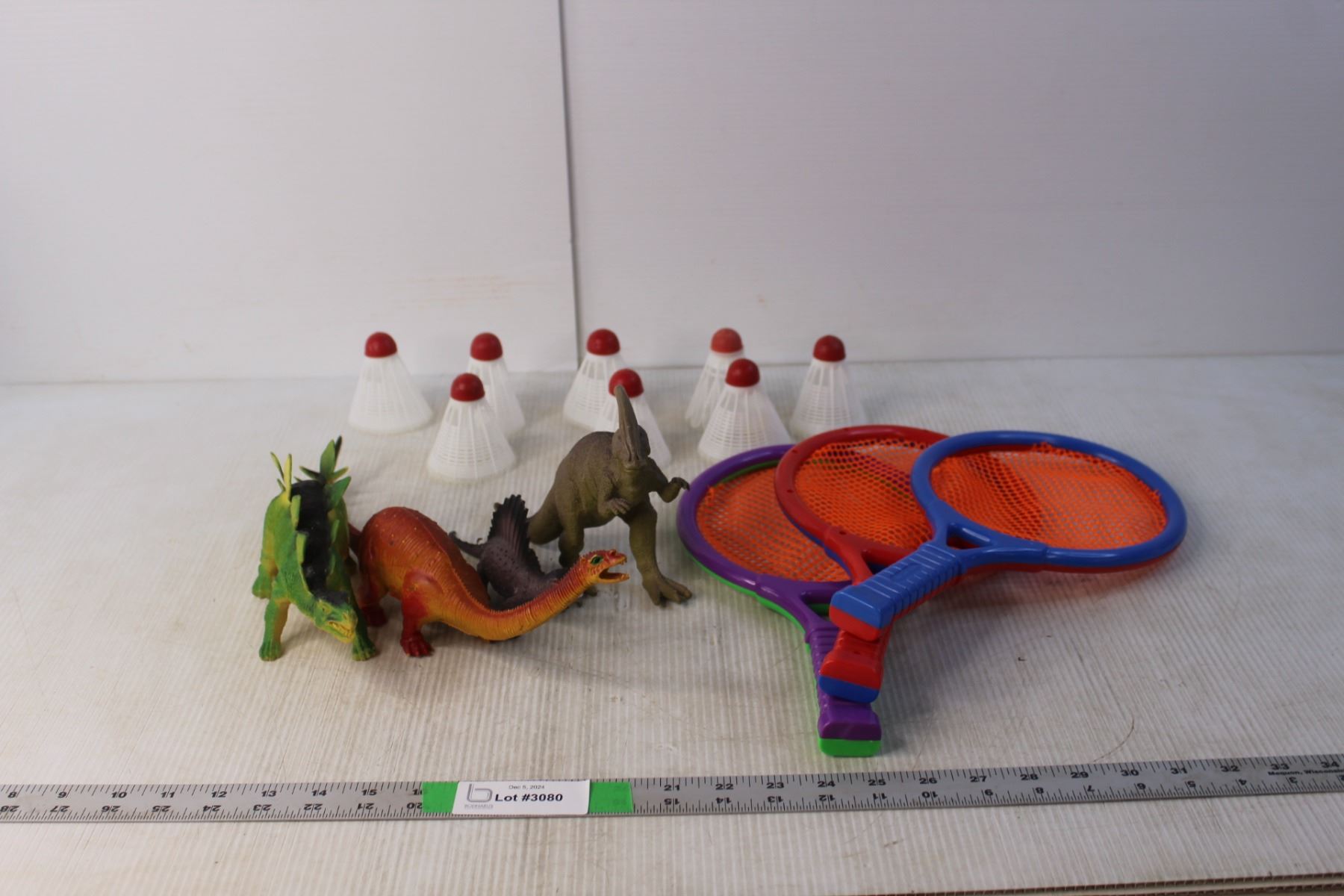 (4) Toy Dinosaurs, (8) Birdies, (3) Toy Racquets