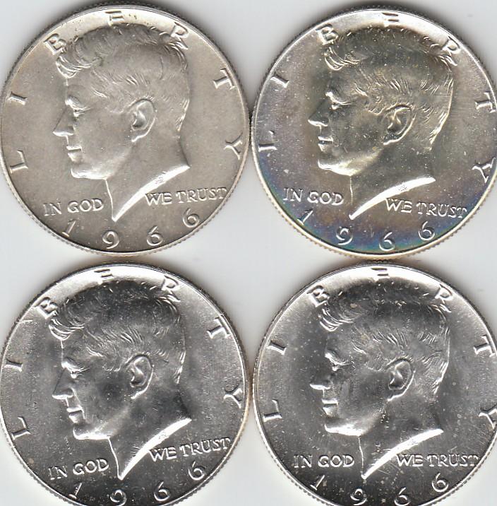 4 UNC SILVER KENNEDY HALVES 1966 PROOF LIKE
