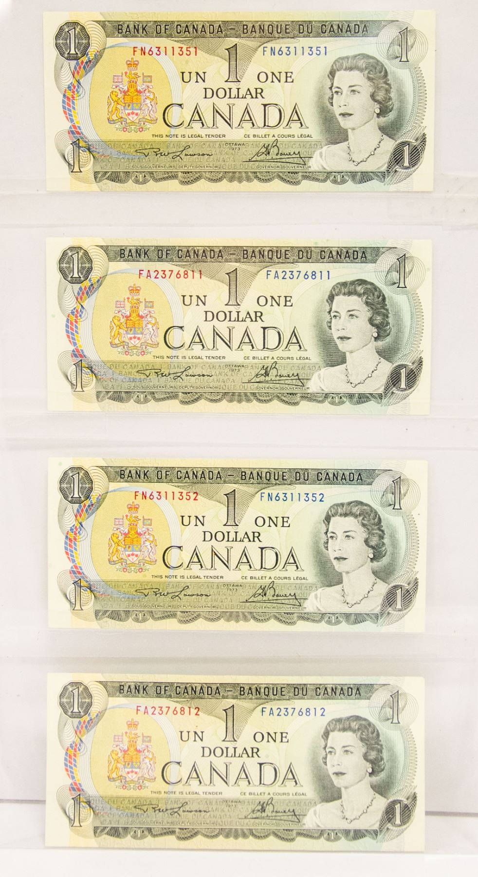 4 UNCIRCULATED 1973 ONE DOLLAR CANADIAN BILLS