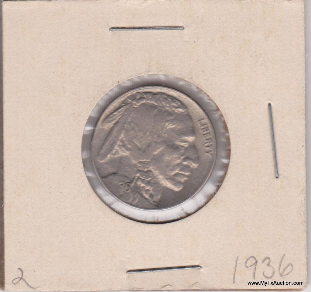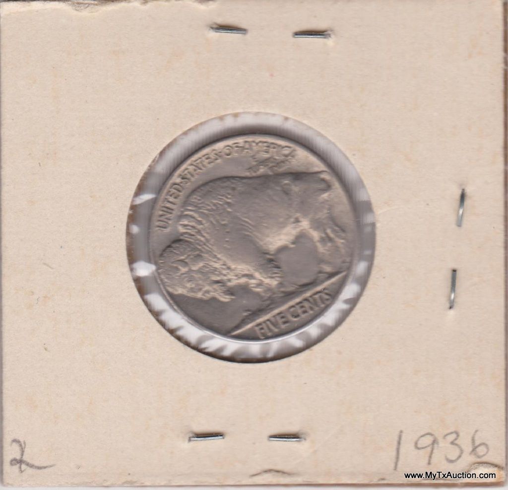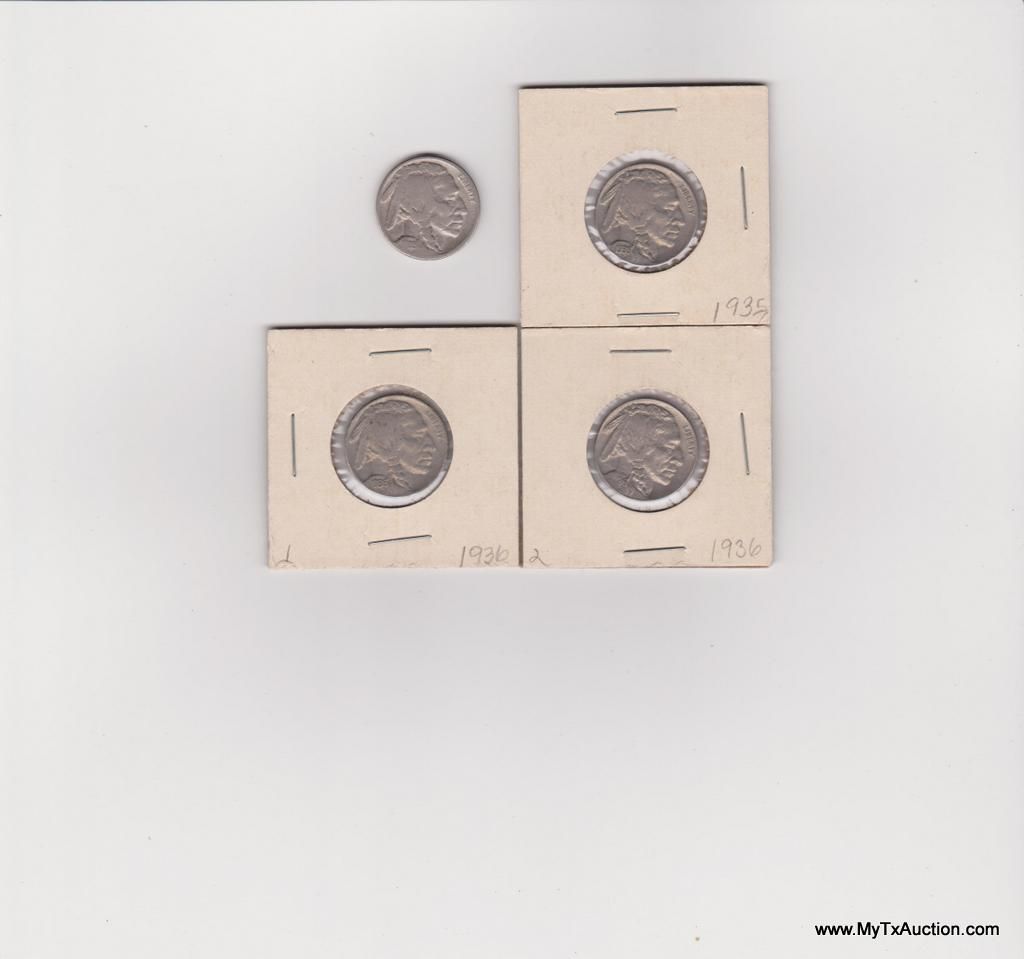 2-1935 5 Cents "Buffalo Nickel" flat ground & 2-1936 5 Cents "Buffalo Nickel" flat ground Country:United States - Coin Mint Years:1913-1938 - Metal:Copper-nickel - Weight:5g - Diameter:21.2mm - Thickness:Unknown - Design Obverse:Composite profile of Iron Tail, an Oglala Sioux chief, Two Moons, a Cheyenne chief, and Big Tree, a Kiowa chief. Lettering: