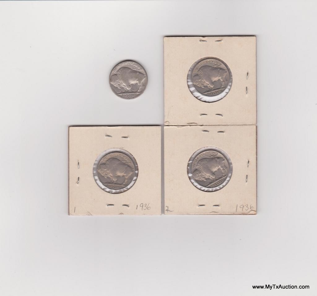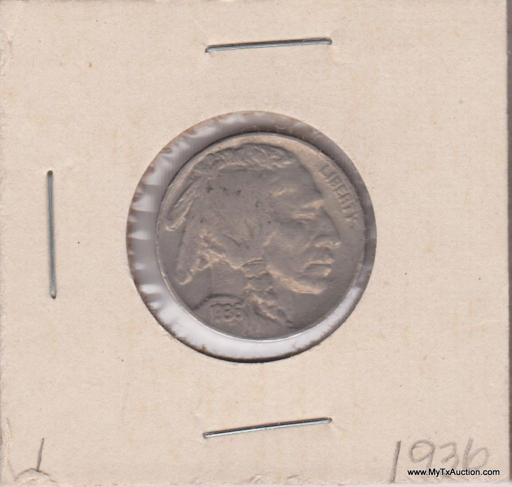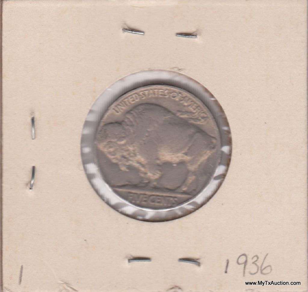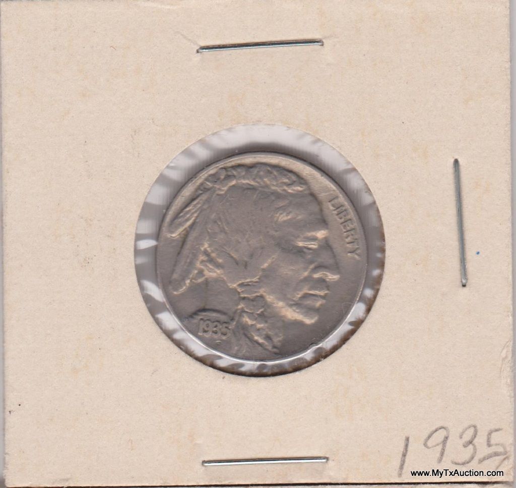 2-1935 5 Cents "Buffalo Nickel" flat ground & 2-1936 5 Cents "Buffalo Nickel" flat ground Country:United States - Coin Mint Years:1913-1938 - Metal:Copper-nickel - Weight:5g - Diameter:21.2mm - Thickness:Unknown - Design Obverse:Composite profile of Iron Tail, an Oglala Sioux chief, Two Moons, a Cheyenne chief, and Big Tree, a Kiowa chief. Lettering: