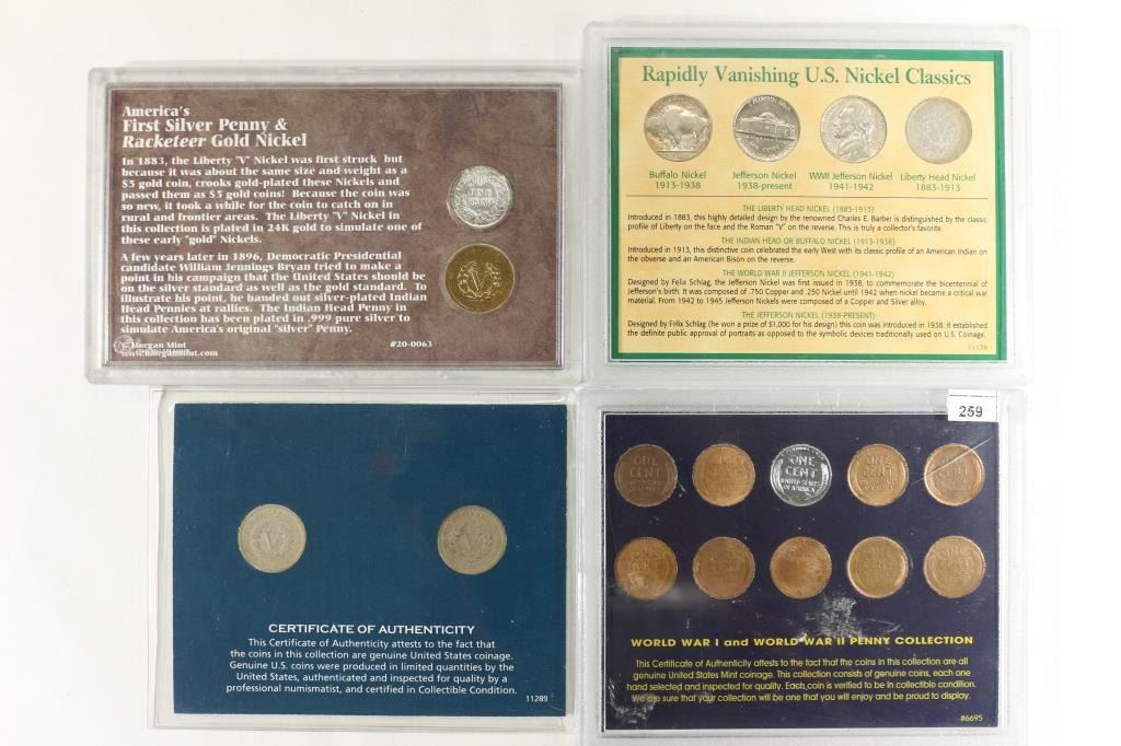 RACKETEER GOLD NICKEL, 2 DECADES OF LIBERTY "V" NICKELS, AMERICAN NICKELS OF THE 20TH CENTURY AND WWI AND WWII PENNY COLLECTION.
