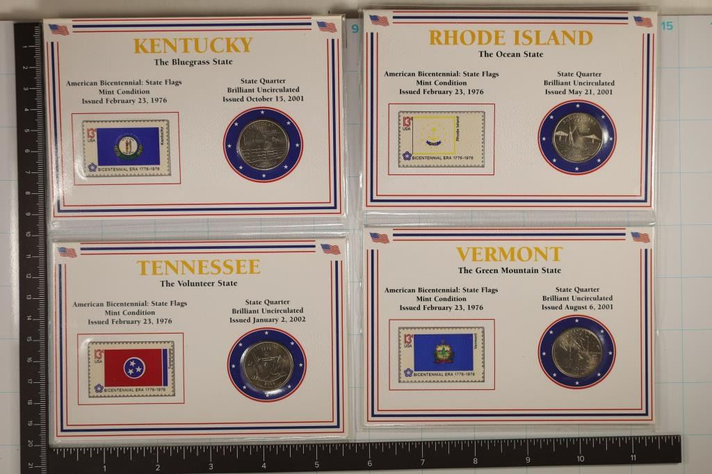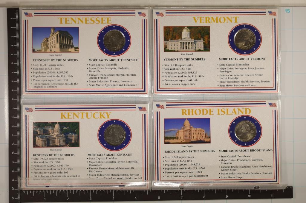 2001-P RHODE ISLAND, 2001-P VERMONT AND 2002-P TENNESSEE IN CARDBOARD DISPLAY CARD AND PLASTIC SLEEVES ALL BRILLIANT UNC